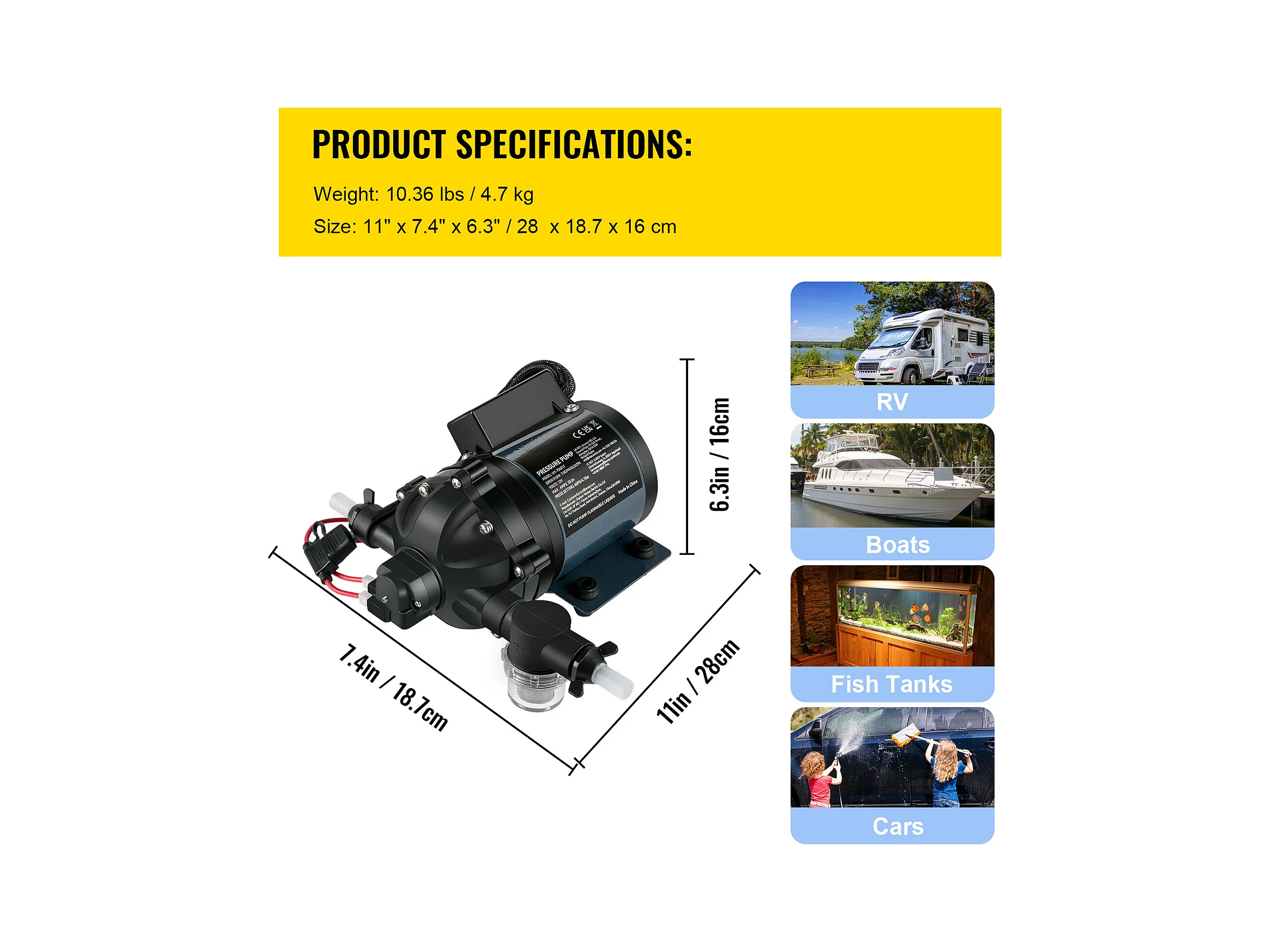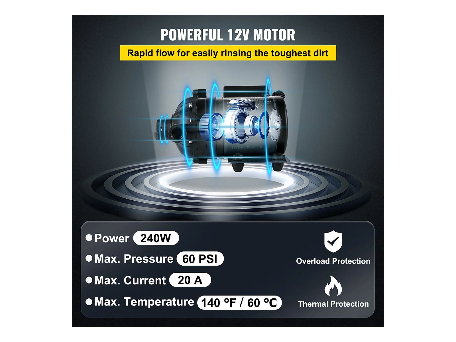 Pompe à Eau SucceBuy, 12 V CC, 7 GPM, 60 PSI, Pompe à Eau Auto-Amorçante à Levage Max. 304.8cm avec Valve EPDM