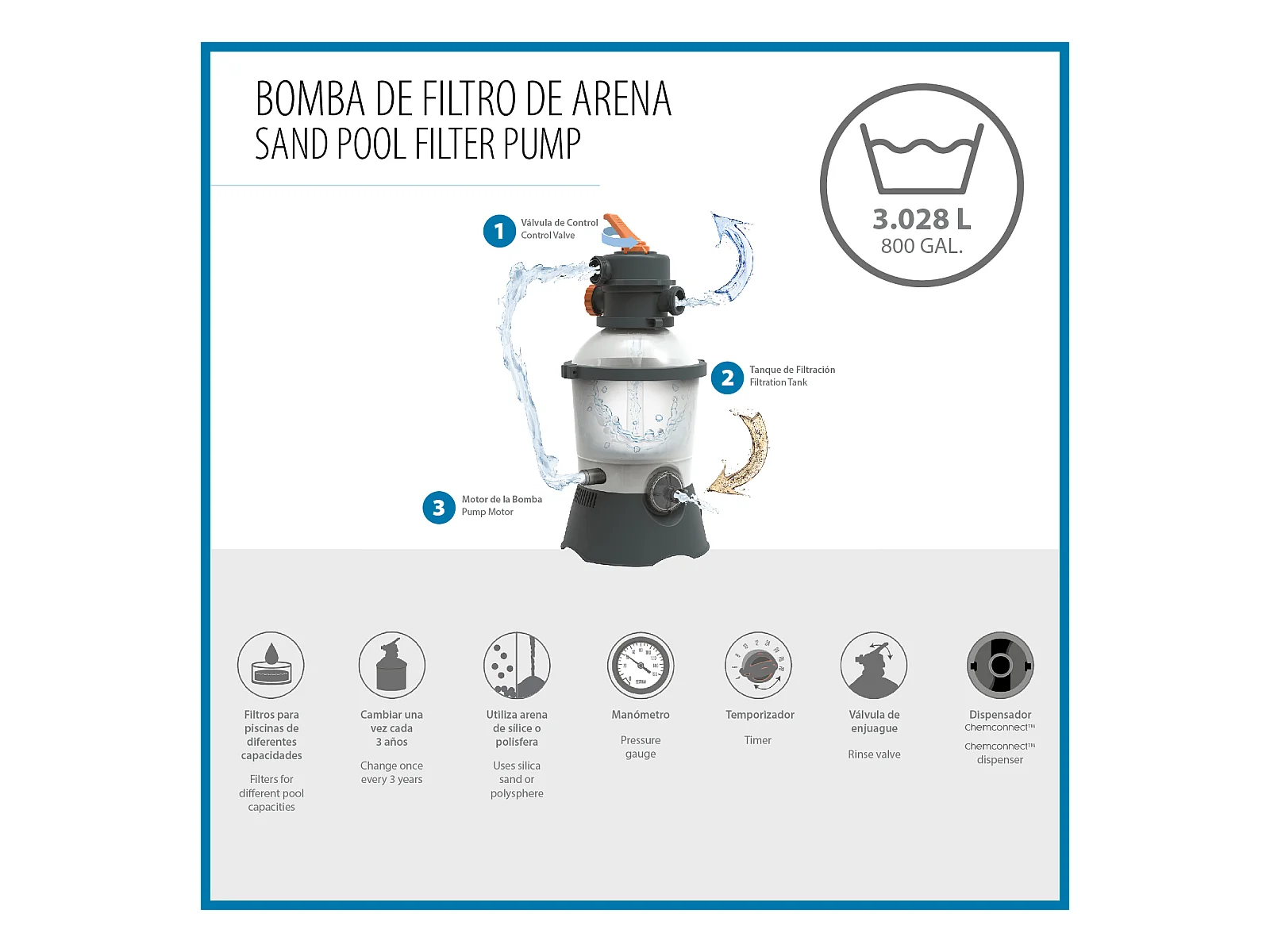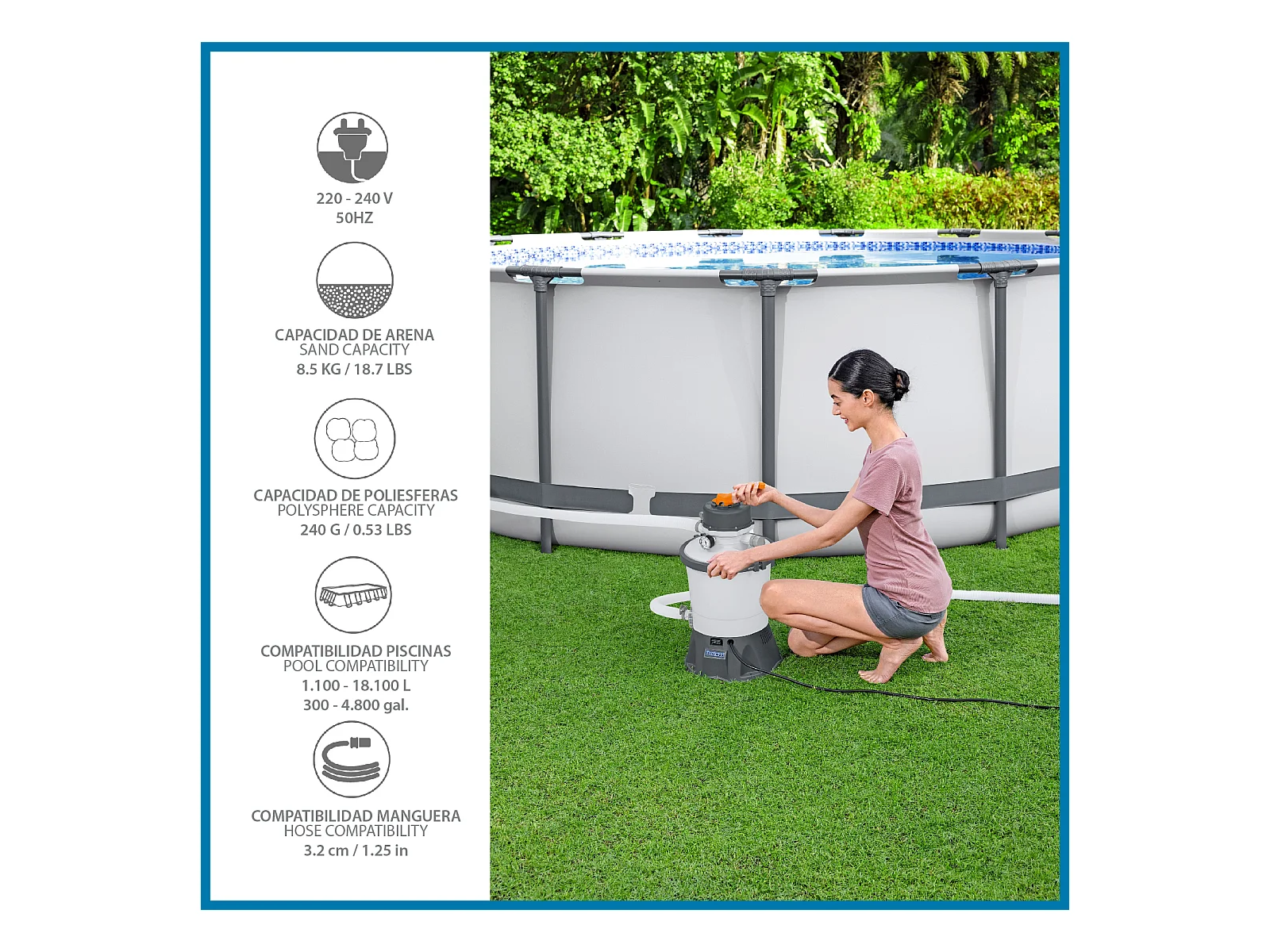Pompe de Filtration Épurateur à Sable pour Piscines Hors Sol Bestway Flowclear de 3.028L/h Raccord 32mm et Distributeur Chimique