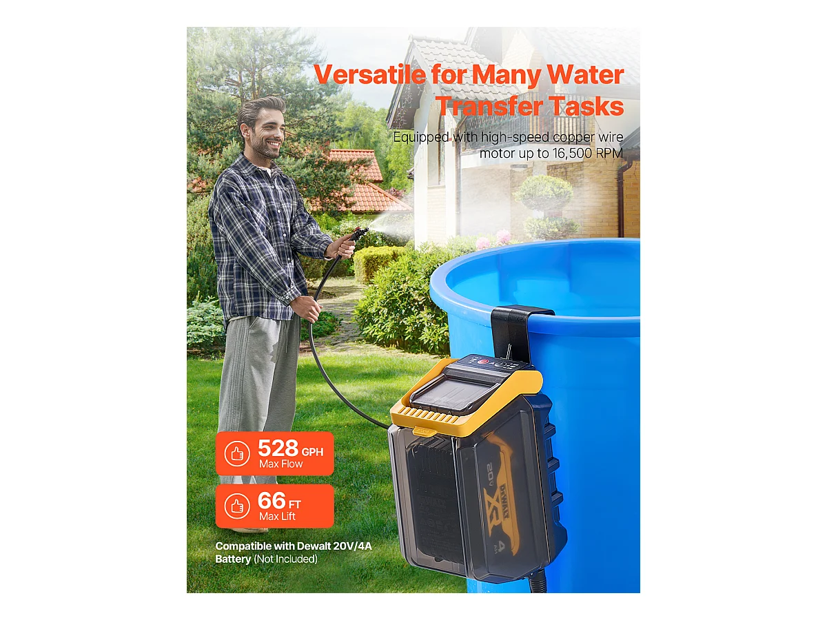 Pompe de Transfert, SucceBuy Pompe à Eau Submersible sans Fil pour Dewalt 20 V MAX (Outil Uniquement)