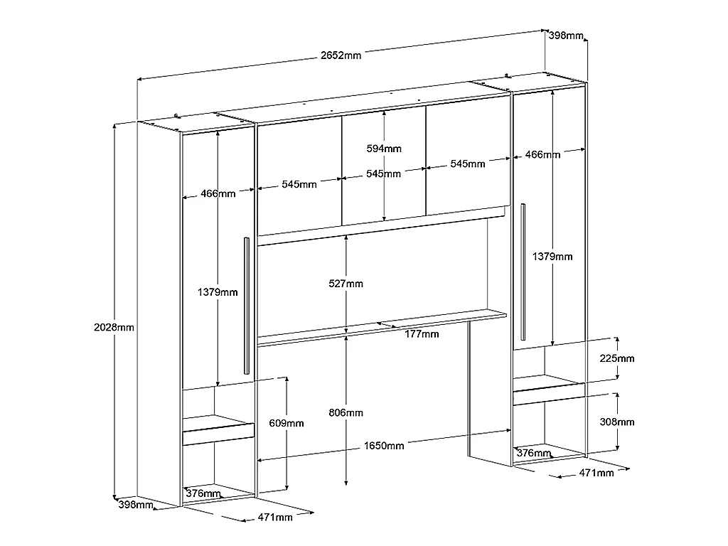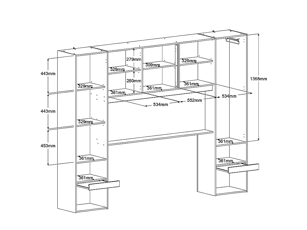 Pont de lit avec rangements - Avec LEDs - L265 cm - Coloris : Naturel et noir - VELONA