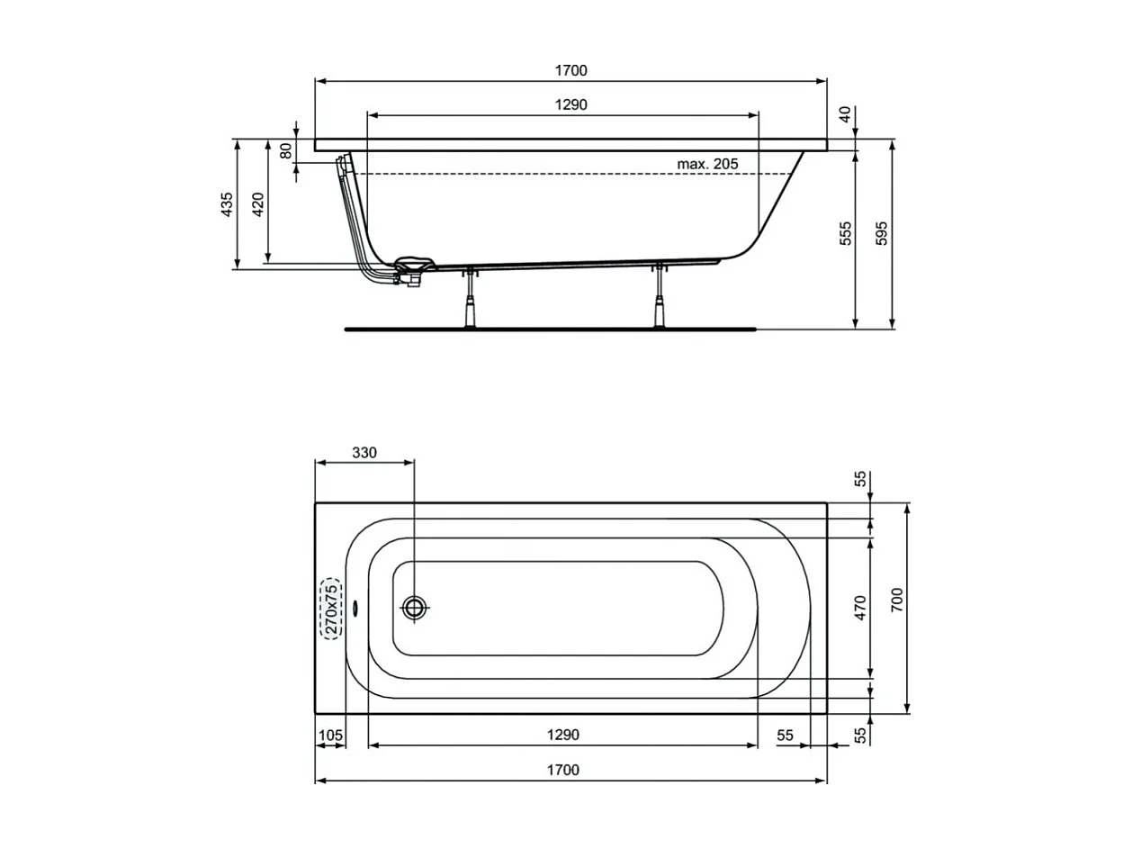 PORCHER Baignoire droite 170x70 Ulysse blanche