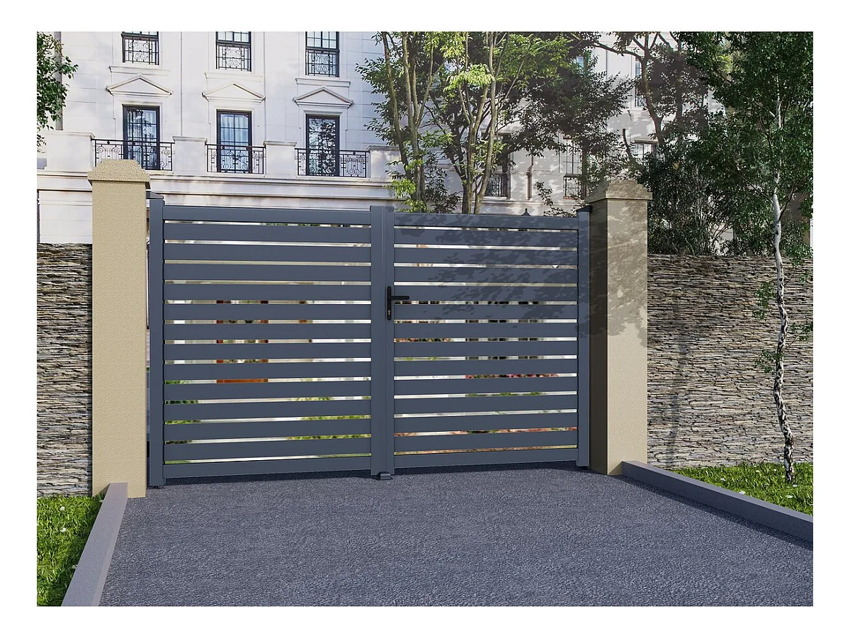 Portail aluminium semi ajouré "Julien" - 340 x 180 cm - Gris