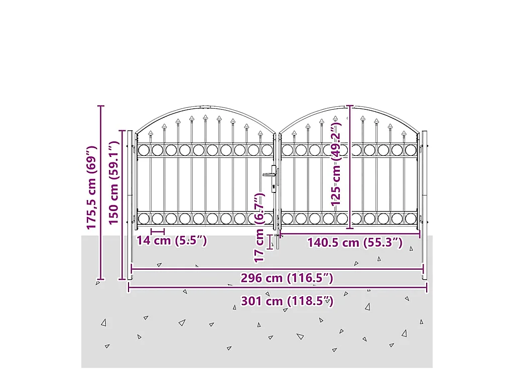 Portail de clôture Autre Gris 300 x 125 cm Acier