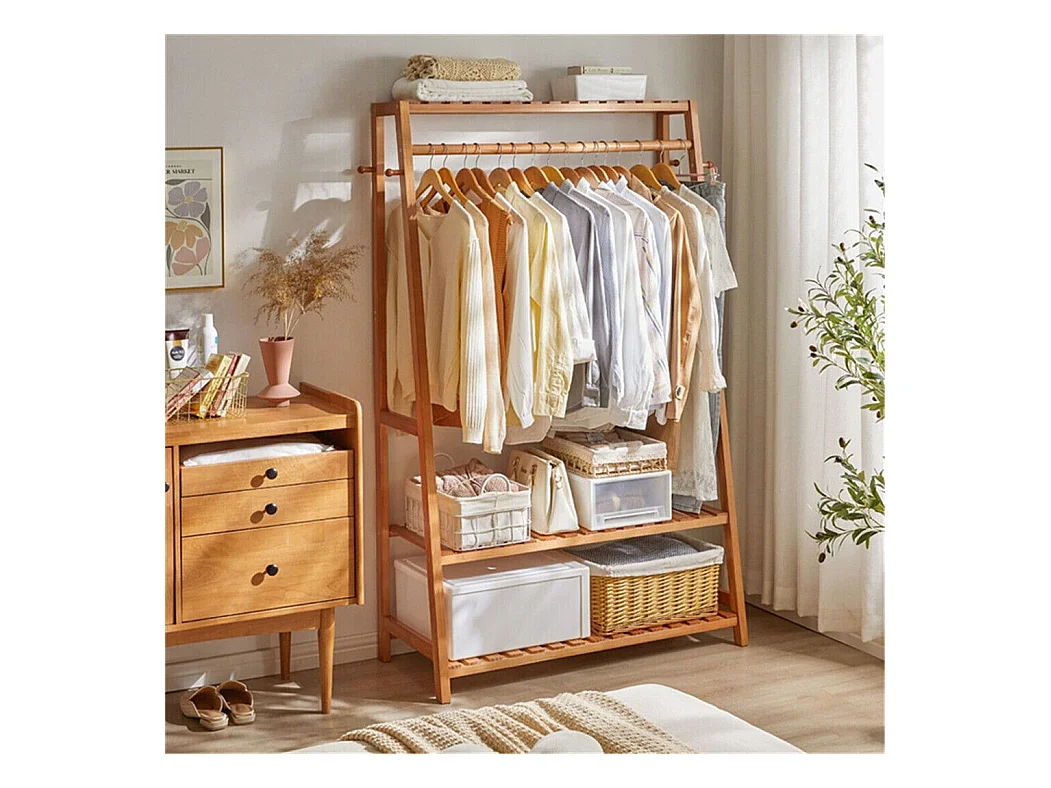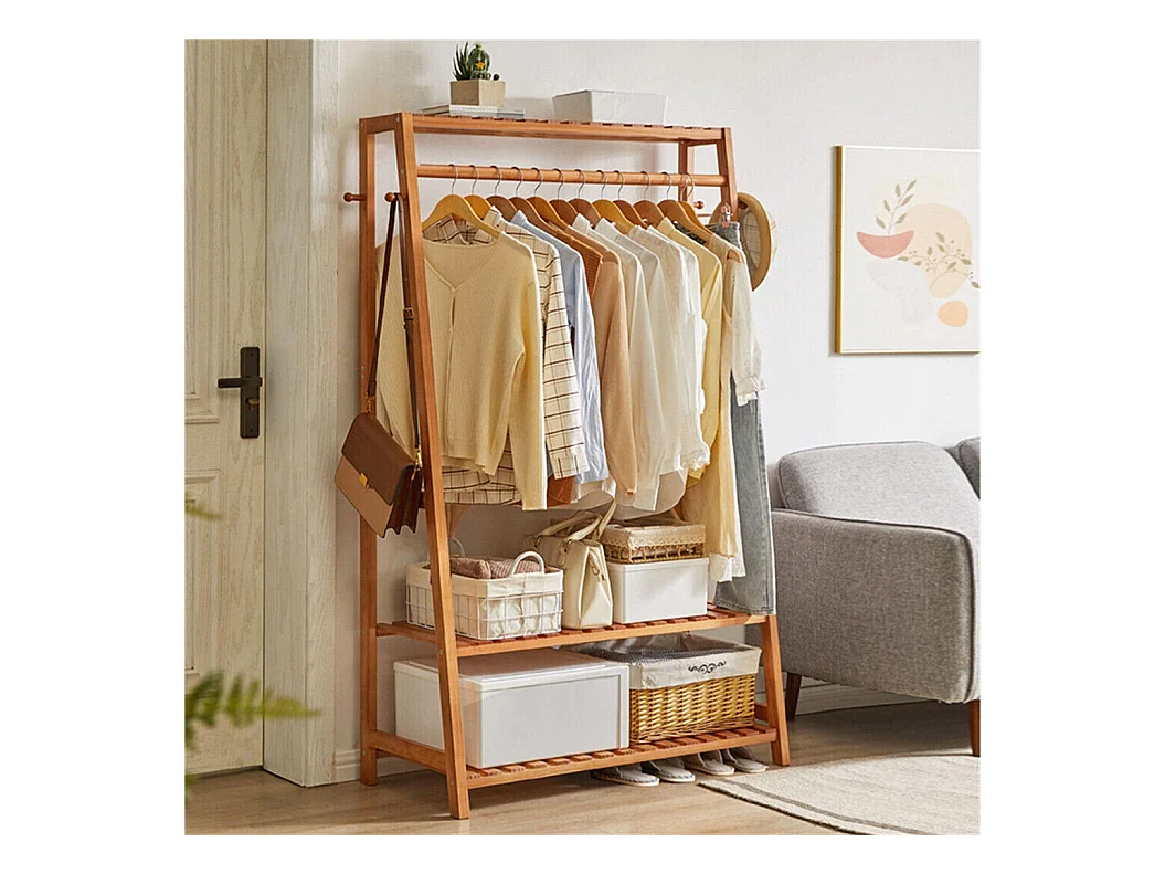 Porte manteau sur pieds en bambou portant à vêtements charge max 35kg 38x30x155cm