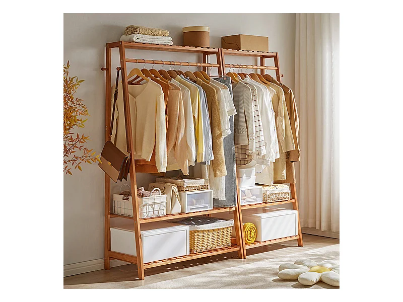 Portant vêtements double - L80 cm H160cm - Bambou