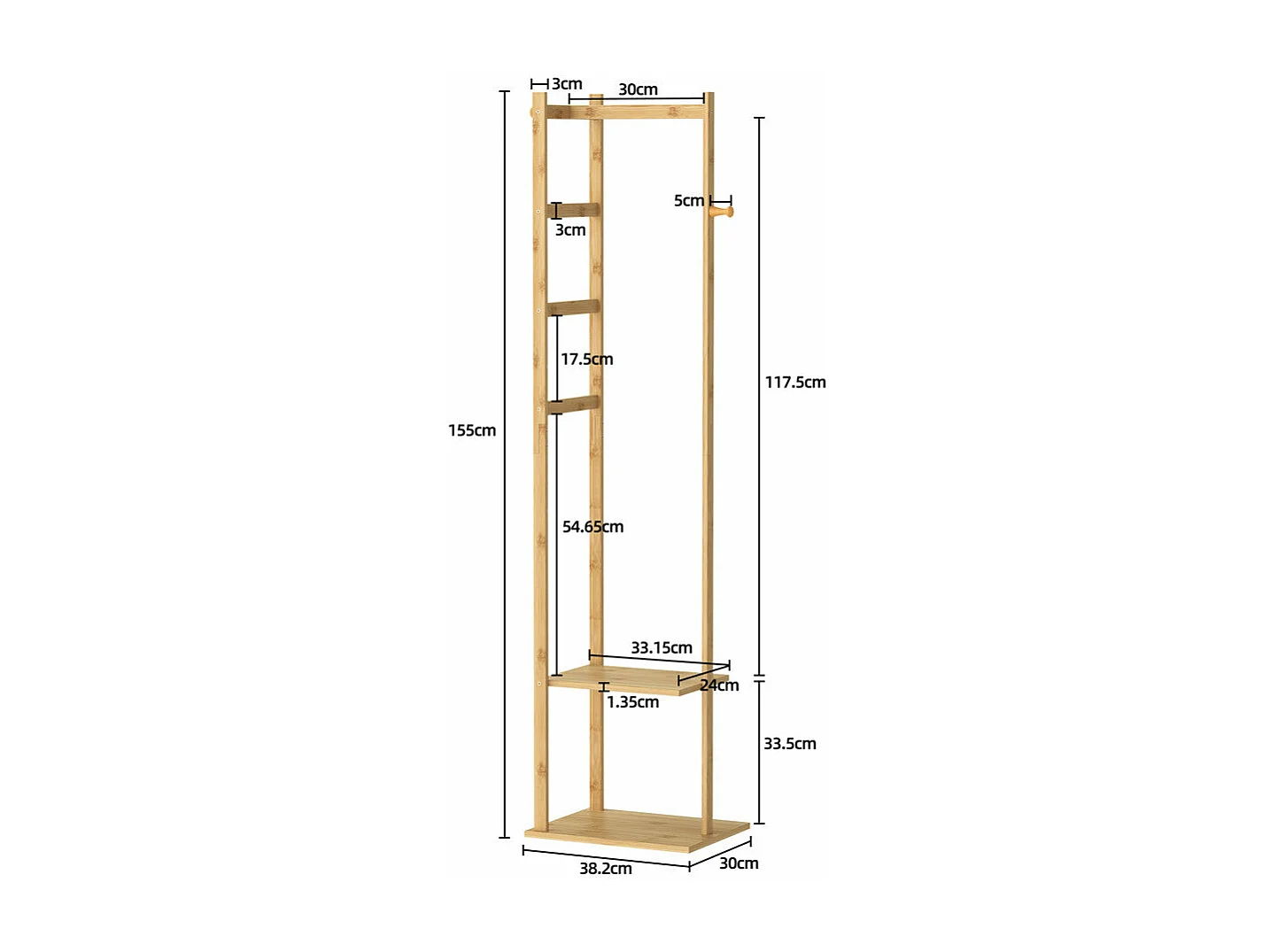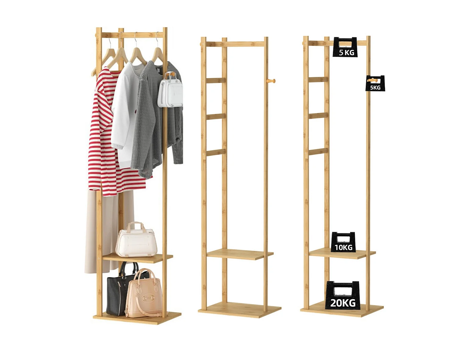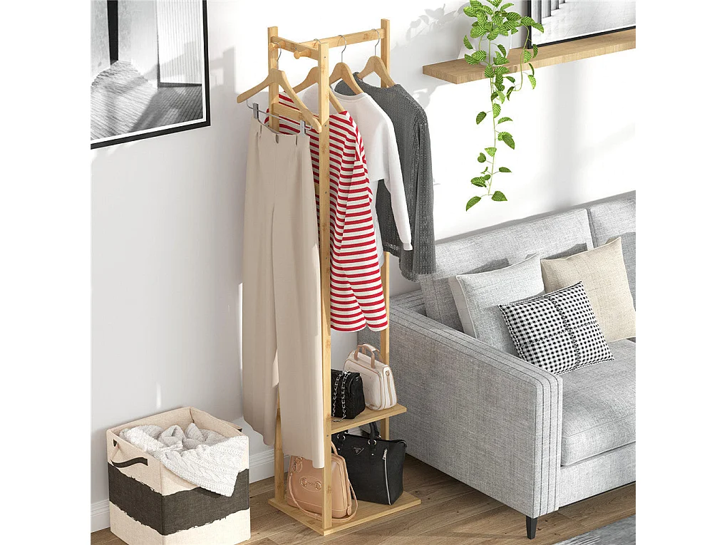 Porte manteau sur pieds en bambou portant à vêtements charge max 35kg 38x30x155cm