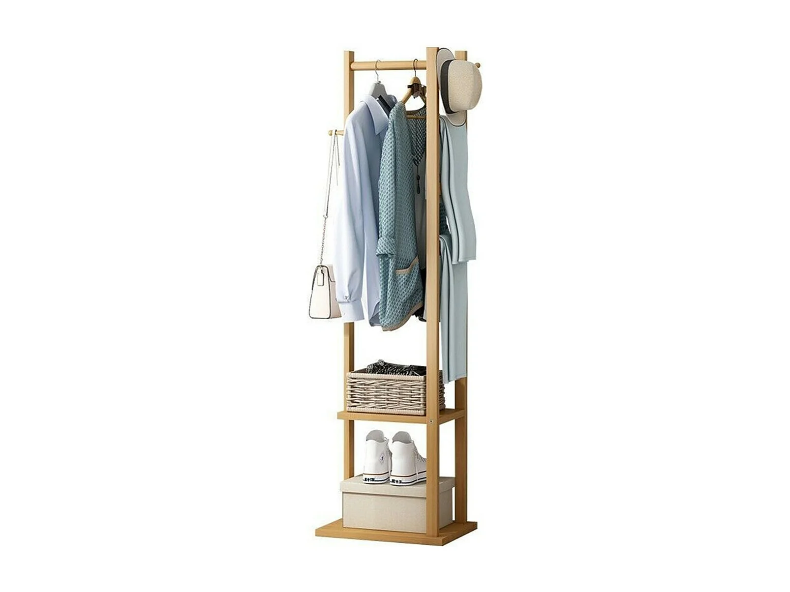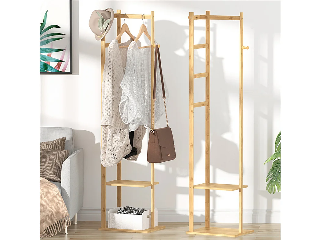 Portant à vêtement en bambou porte manteau solide sur pieds 53x31.5x168cm