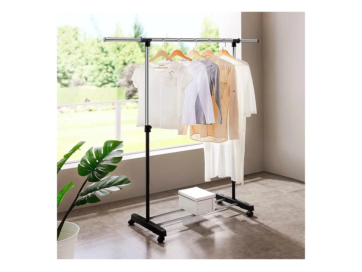 Portant à vêtements Inoxydable Extensible avec Roulettes et Étagère à Chaussures coloris noir - Longueur 80 x profondeur 43 x Hauteur 90-160 cm