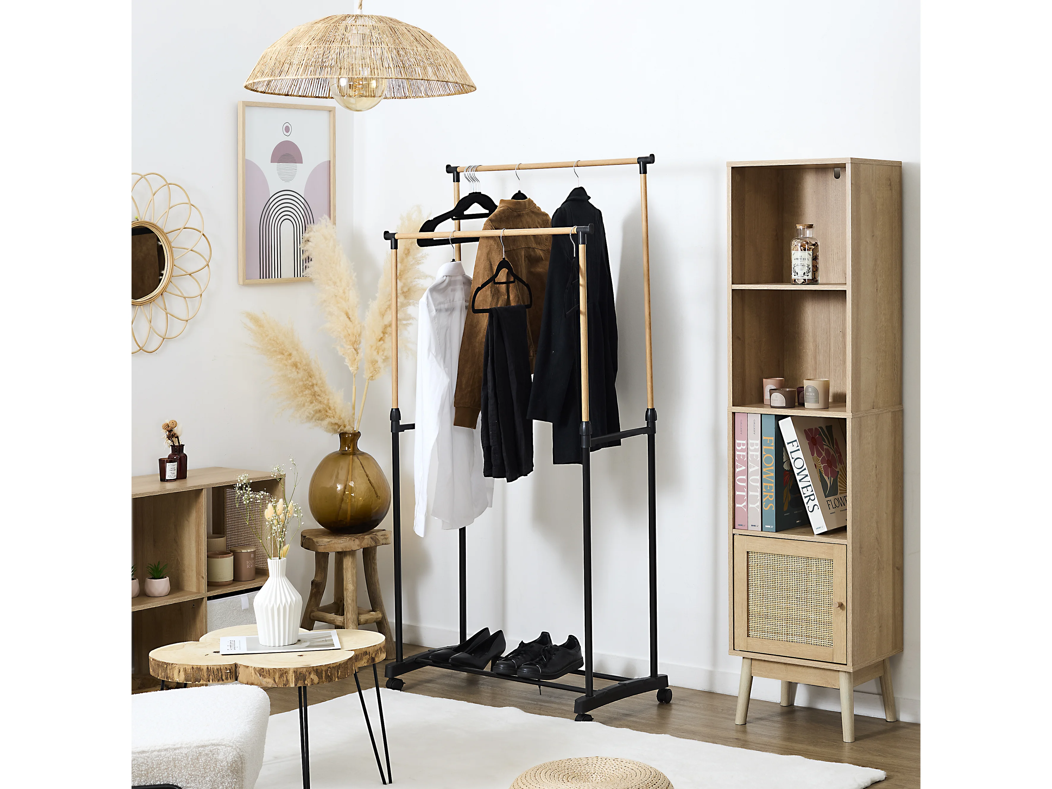 Portant Double Effet Bois Roulette Noir