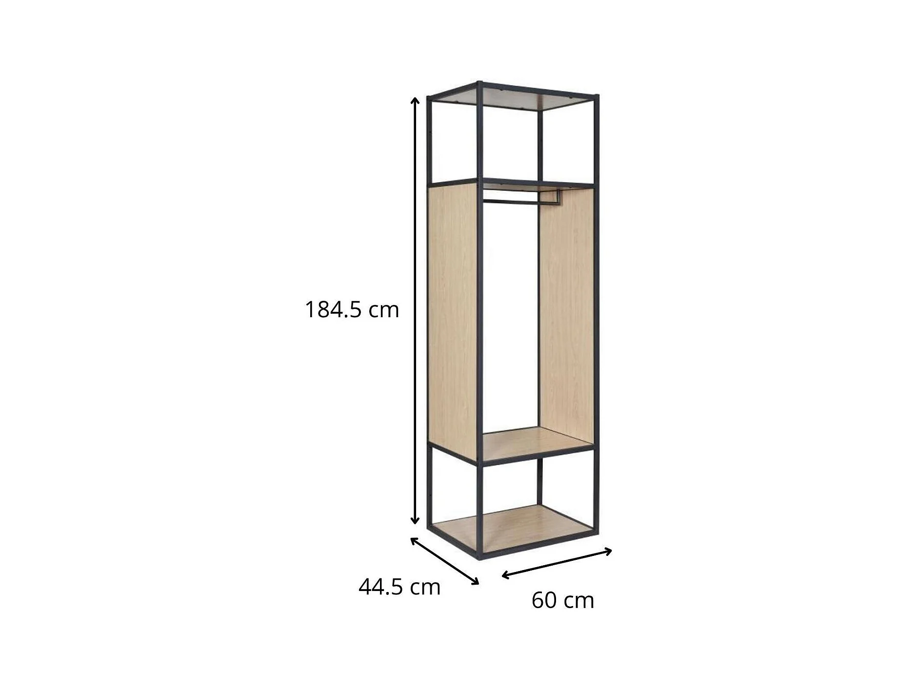 Portant vêtements en bois et métal gris 60x184,5cm