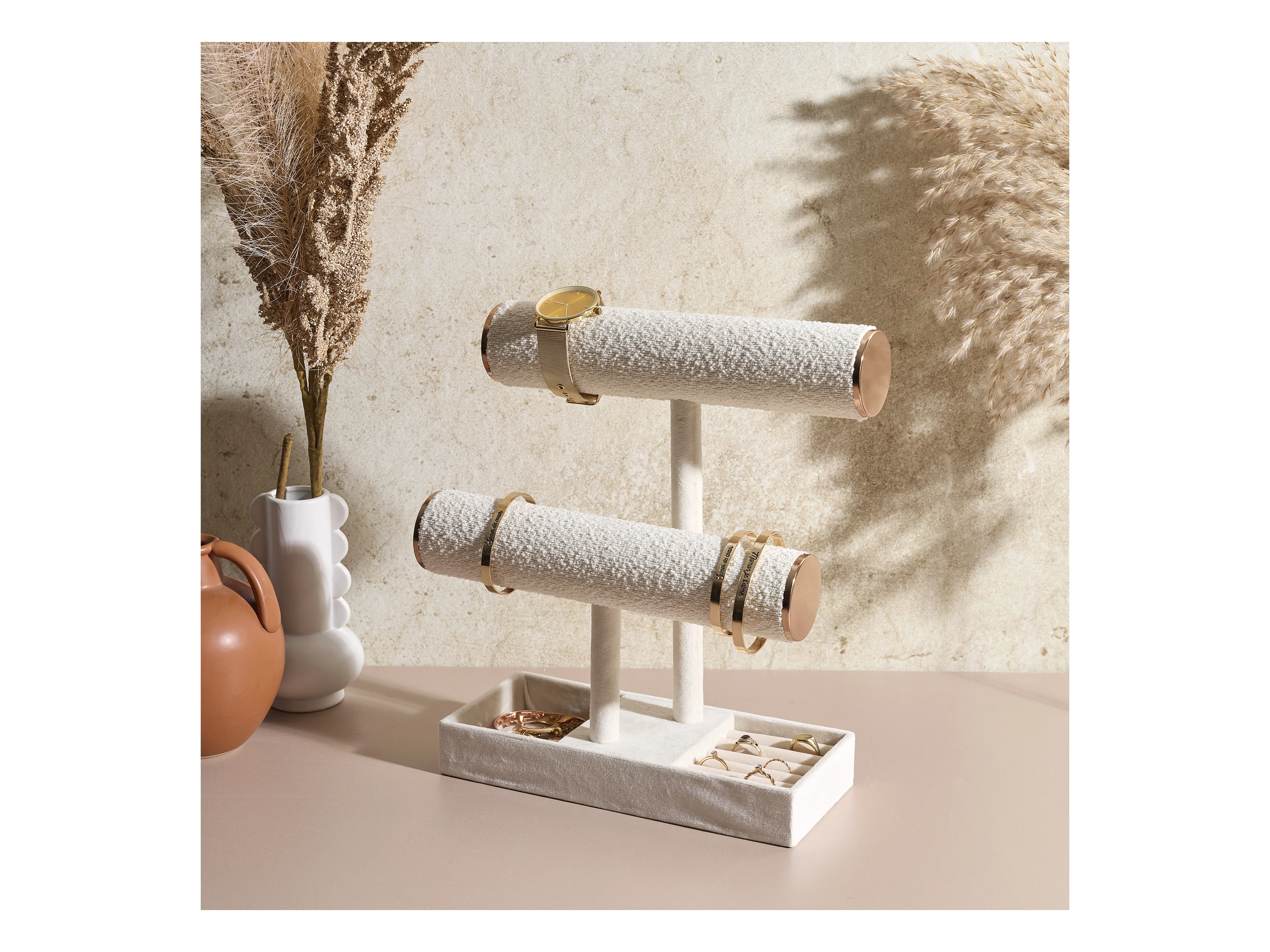 Porte-bijoux double en bouclette ivoire avec finitions dorées