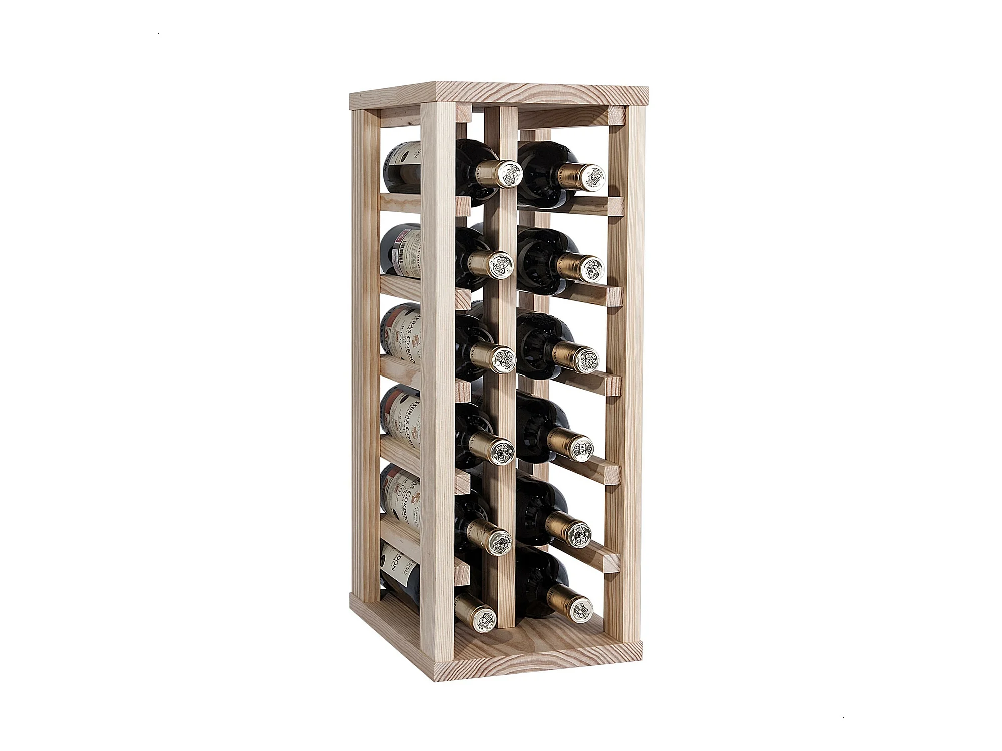 Porte-bouteilles avec étagère basse pour 12 bouteilles, brut de décoffrage.