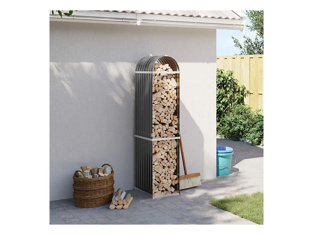 Porte-bûches gris clair 80x45x190 cm acier galvanisé EFVE40862 BonneVie Meuble