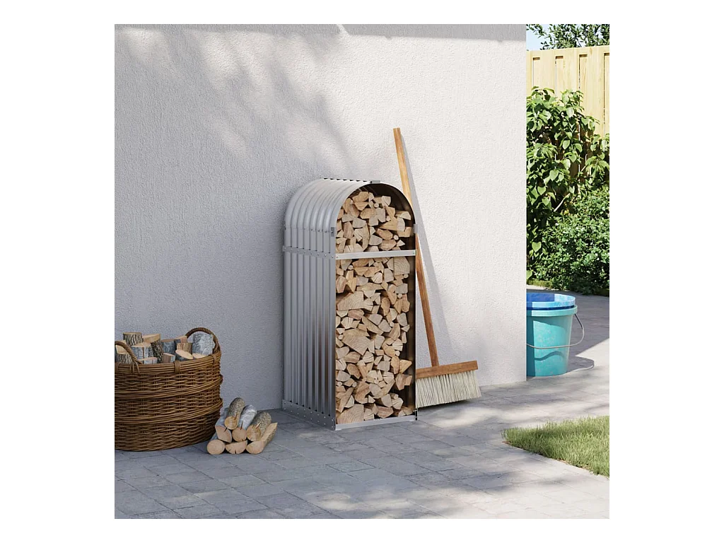Porte-bûches argenté 120x45x140 cm acier galvanisé EFVE97280 BonneVie Meuble