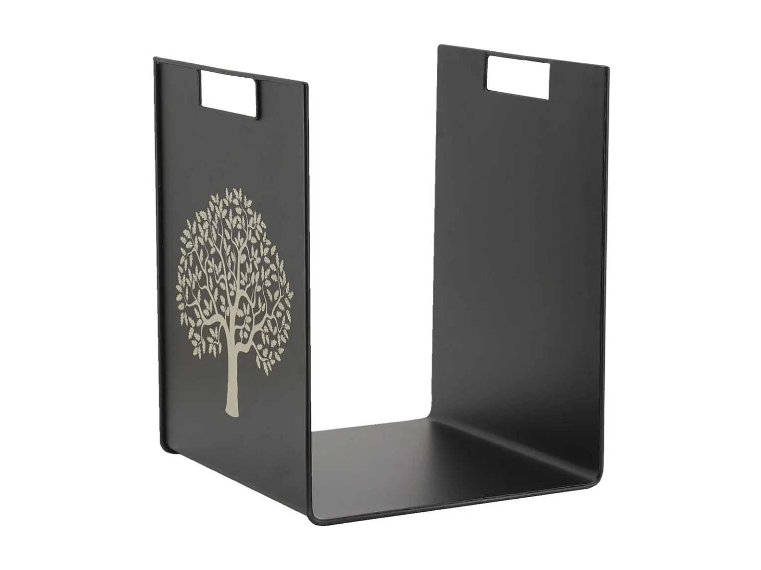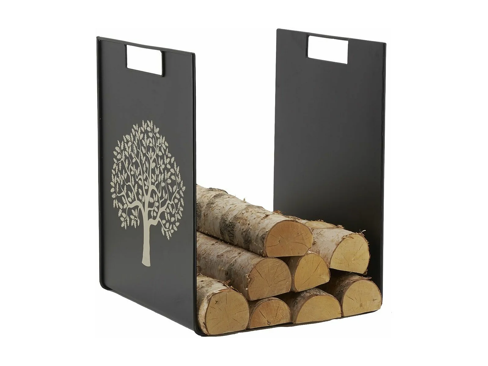 Porte-bûches + 4 accessoires de cheminée en métal noir