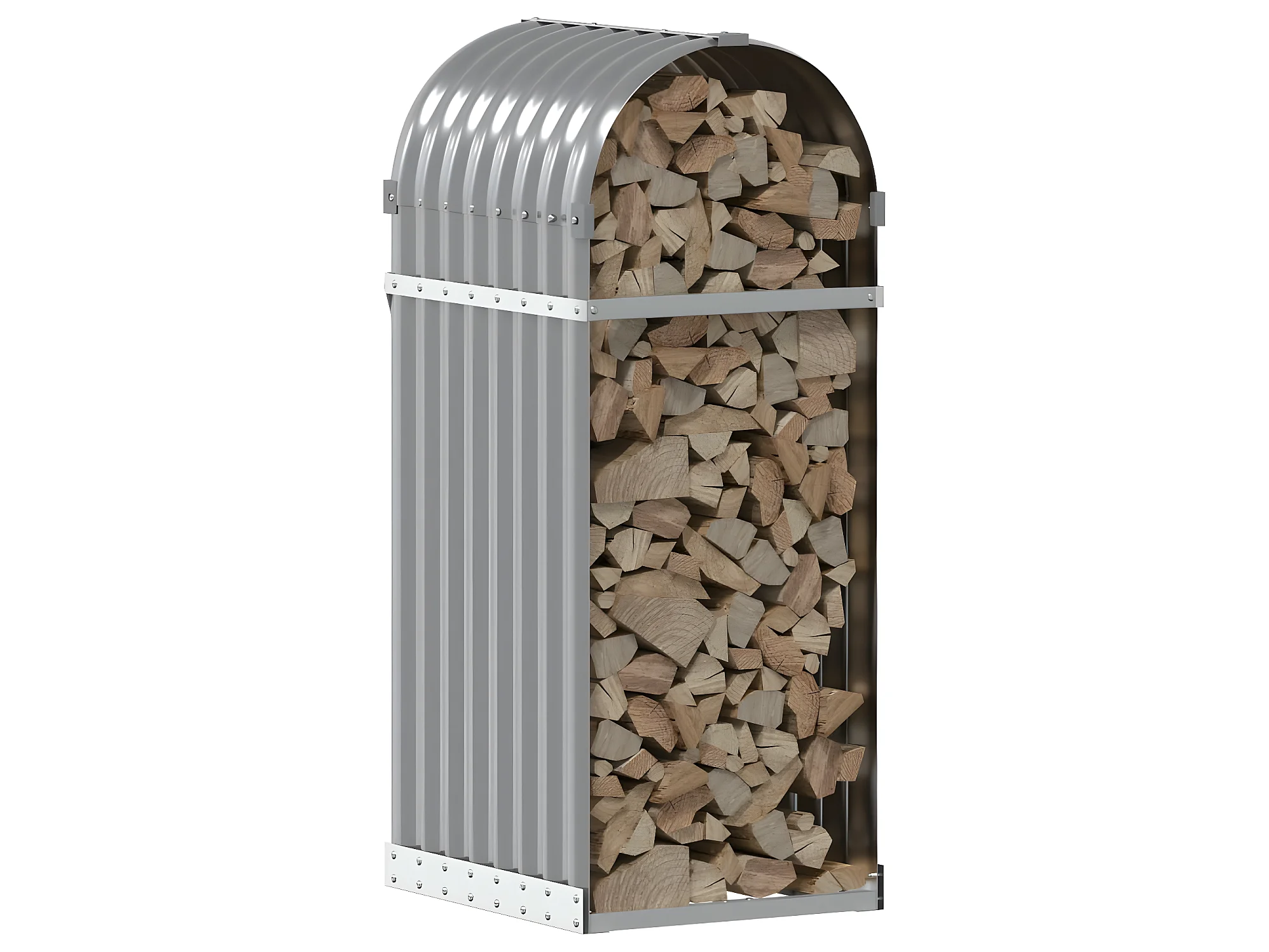 Porte-bûches gris clair 120x45x100 cm acier galvanisé EFVE26579 BonneVie Meuble