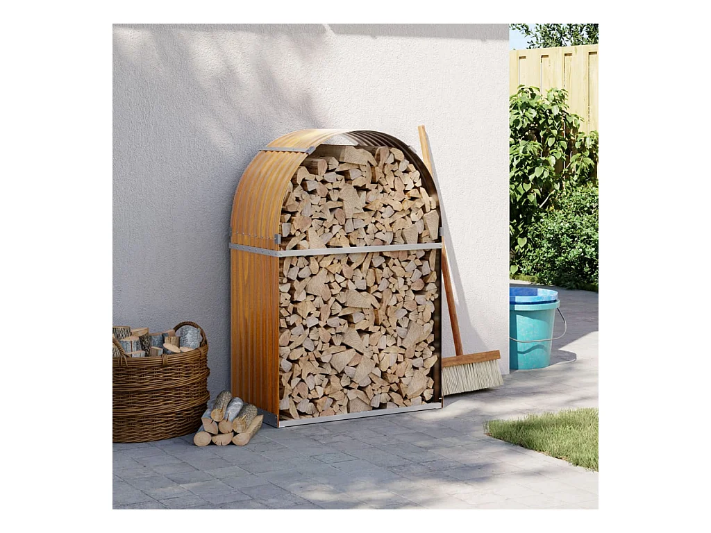 Porte-bûches marron clair 120x45x100 cm acier galvanisé EFVE71195 BonneVie Meuble
