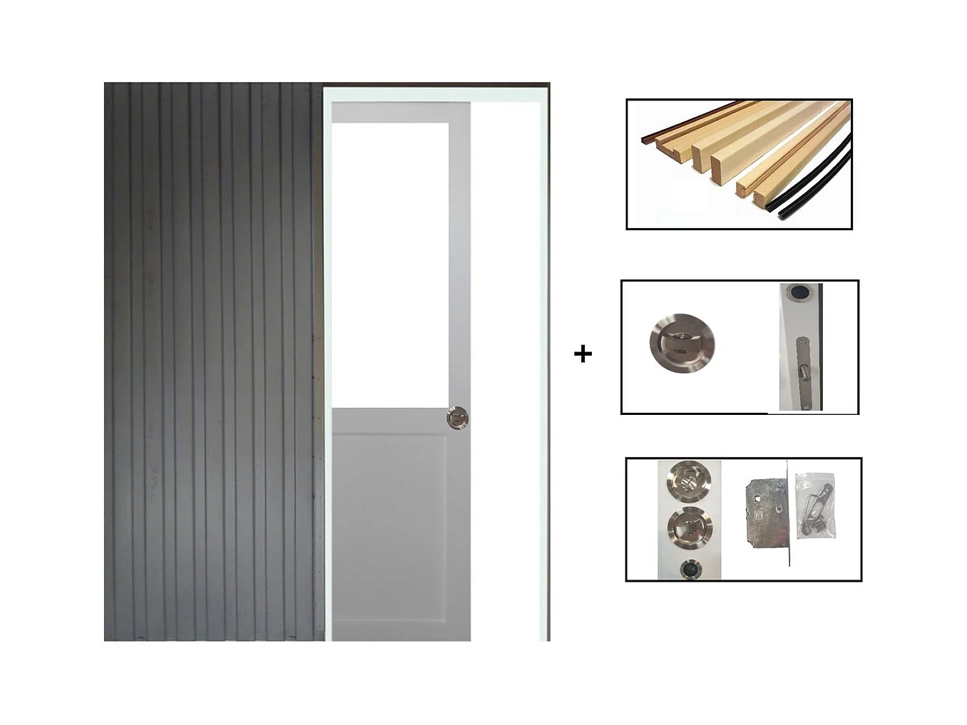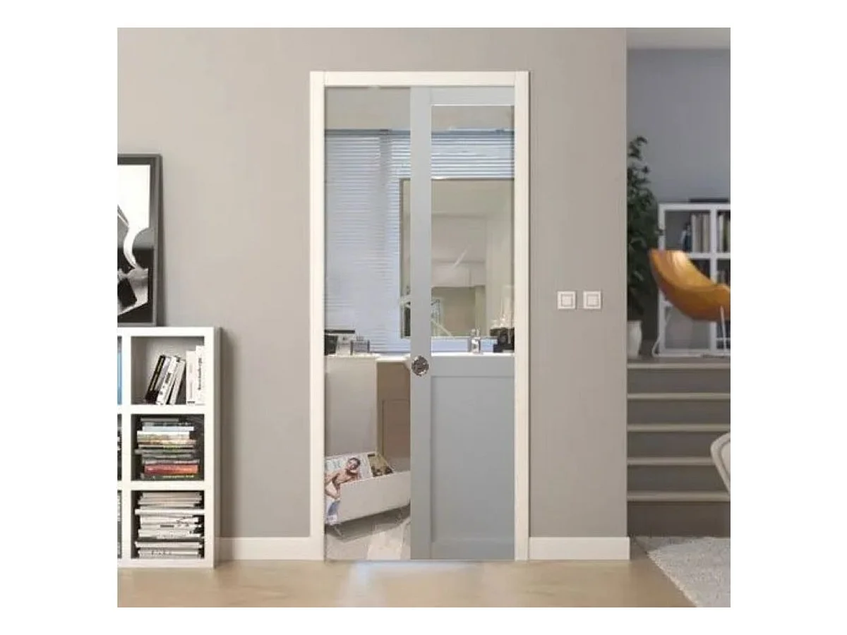 Porte Coulissant Atelier Blanc H204 X L73 Sans Meneau + Systeme De Galandage Et Kit De Finition Inclus Gd Menuiseries