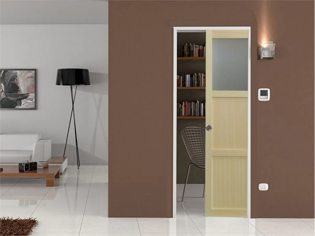 Porte Coulissante Ayous 2 Panneaux + 1 Vitrage H204 X L83 + Systeme A Galandage Et Kit Finition Inclus Gd Menuiseries