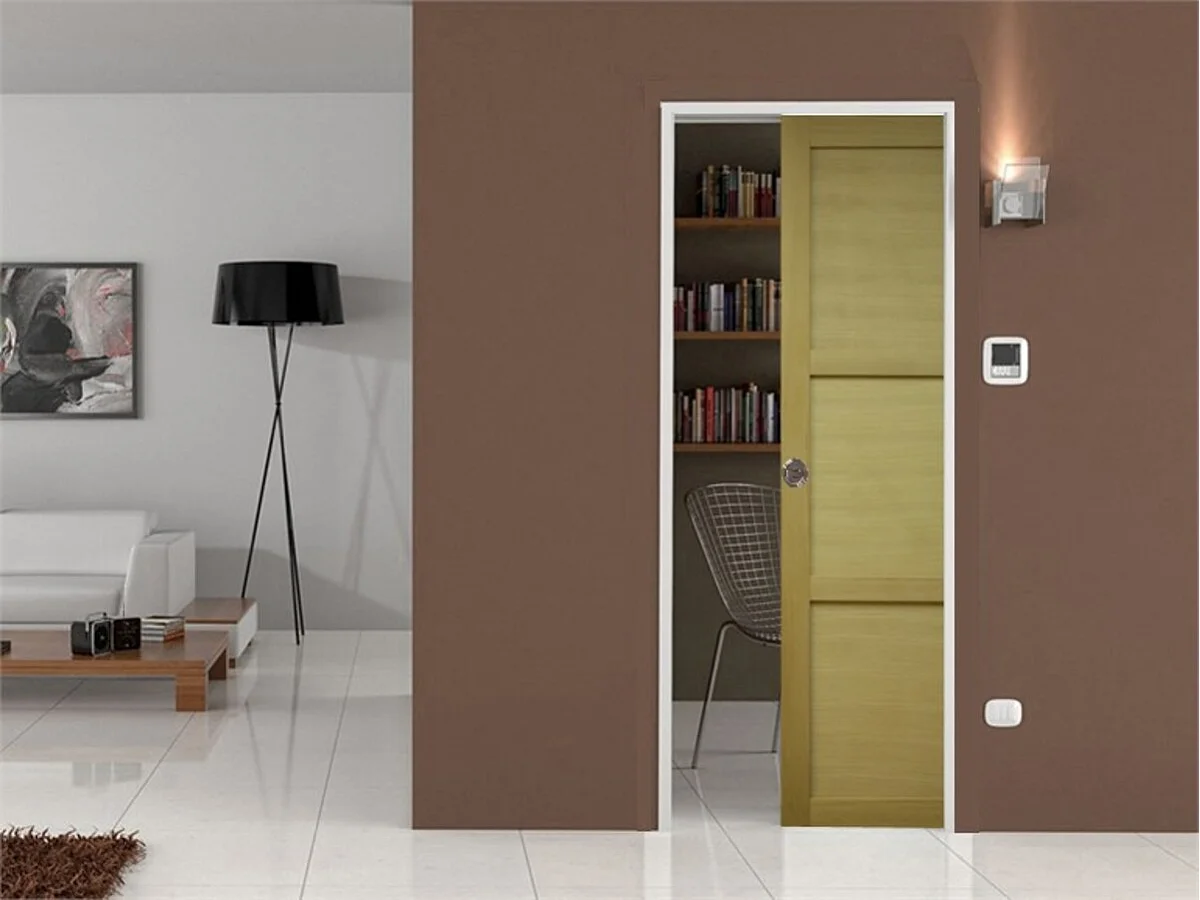 Porte Coulissante Bois Ayous 3 Panneaux H204 X L93 + Systeme A Galandage Et Kit Finition Inclus Gd Menuiseries