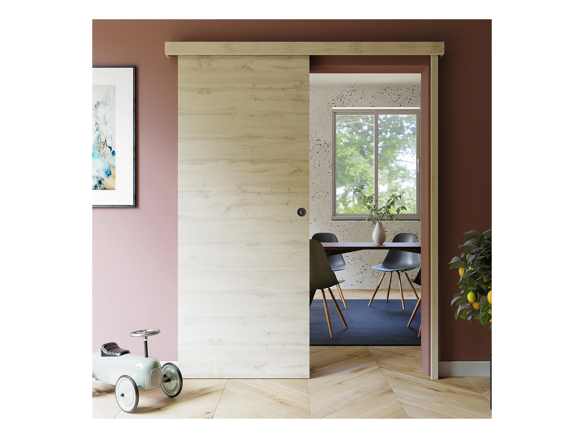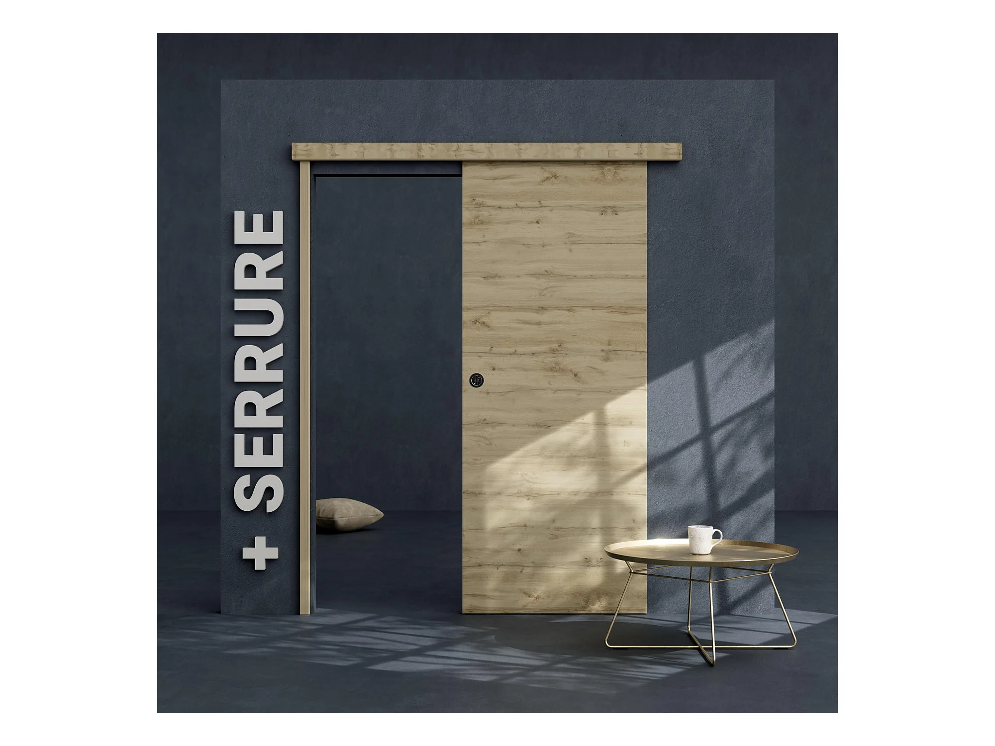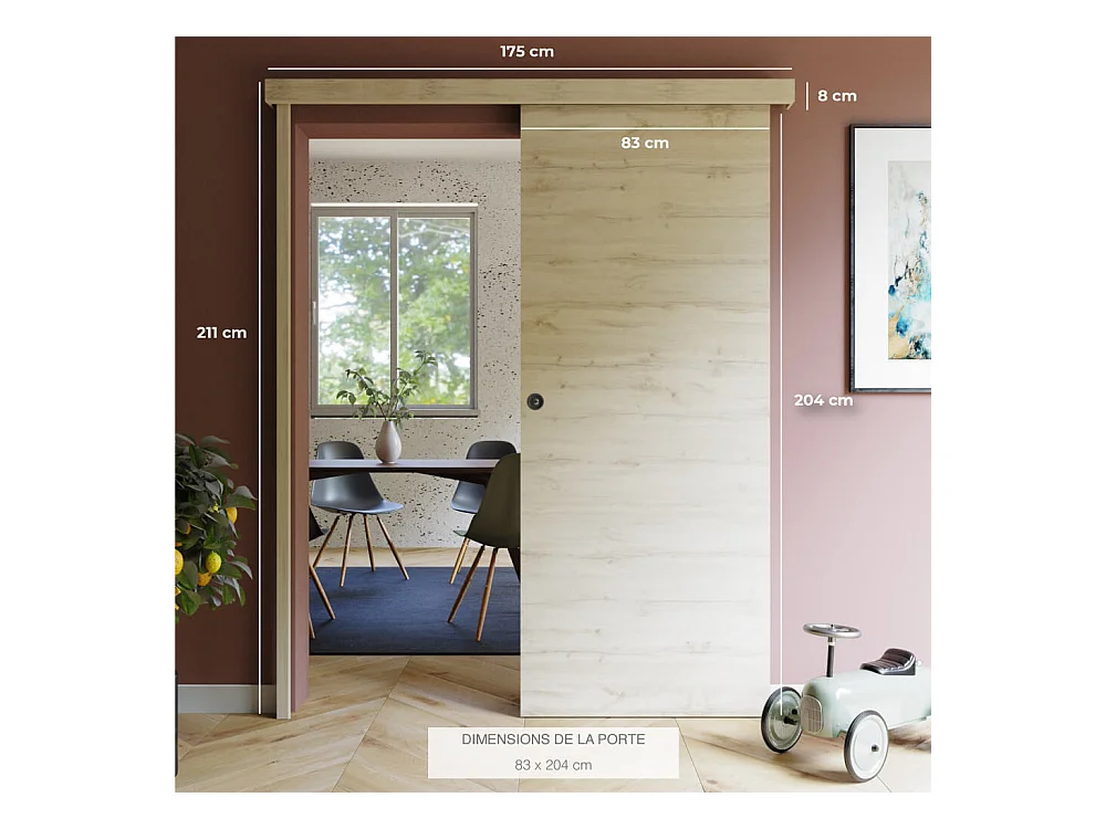 Porte Coulissante avec Rail + Serrure - Tokyo 83 cm