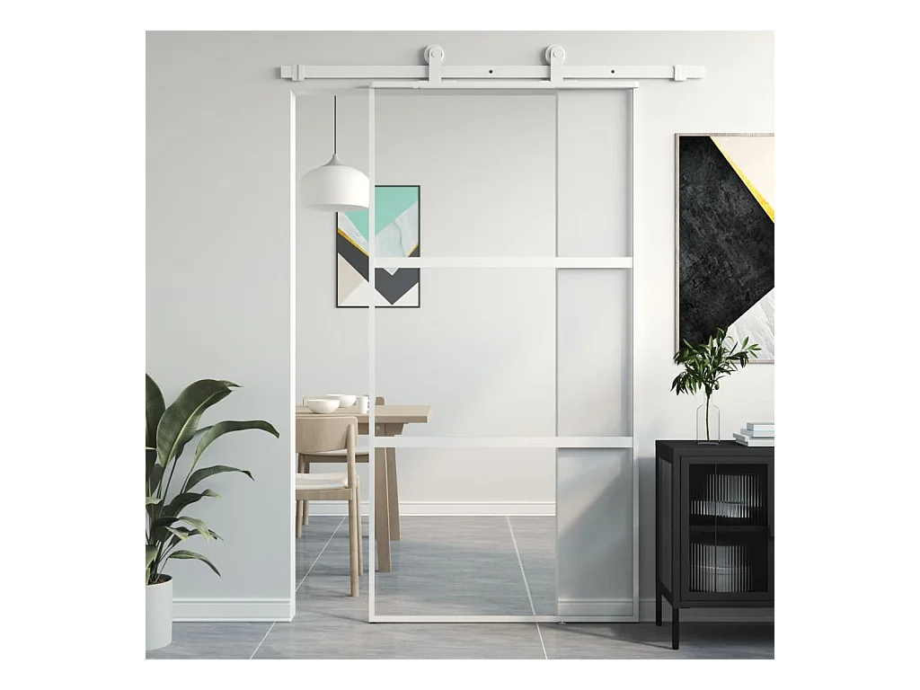 Porte coulissante blanc 102,5x205 cm verre trempé aluminium FR556243
