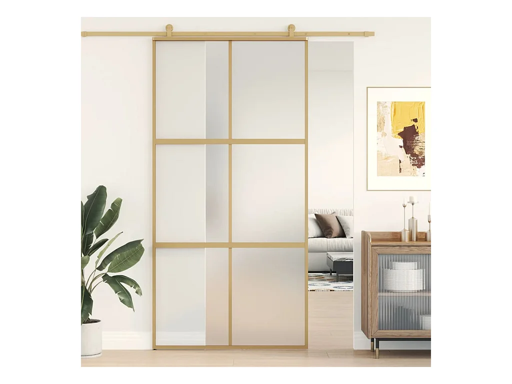 Porte coulissante doré 102,5x205 cm verre ESG dépoli aluminium FR956614