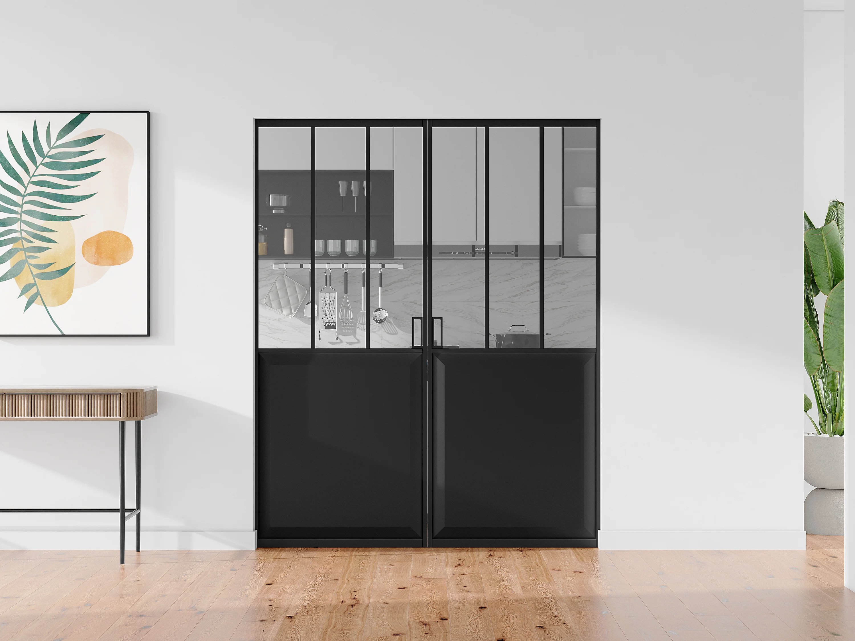 Porte coulissante double atelier avec système à galandage - Noir et verre trempé - 2 x H205 x L83 cm - ARTISTO II