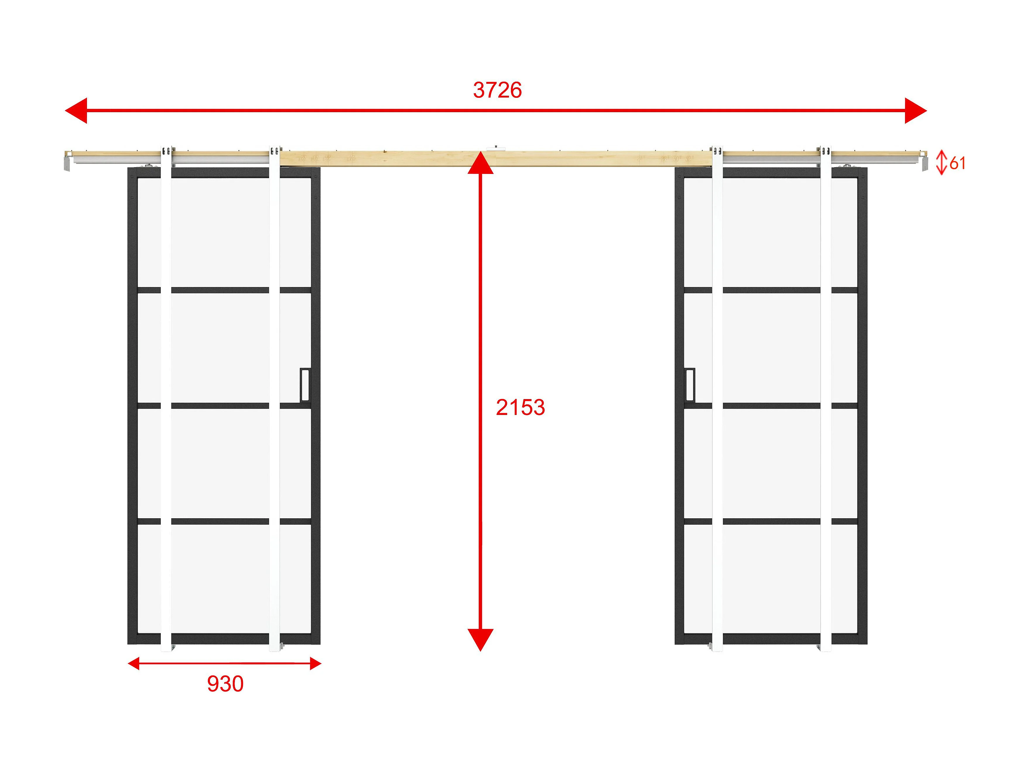 Porte coulissante double avec système à galandage - aluminium et verre trempé dépoli - 2 x H205 x L93 cm - SINCA II