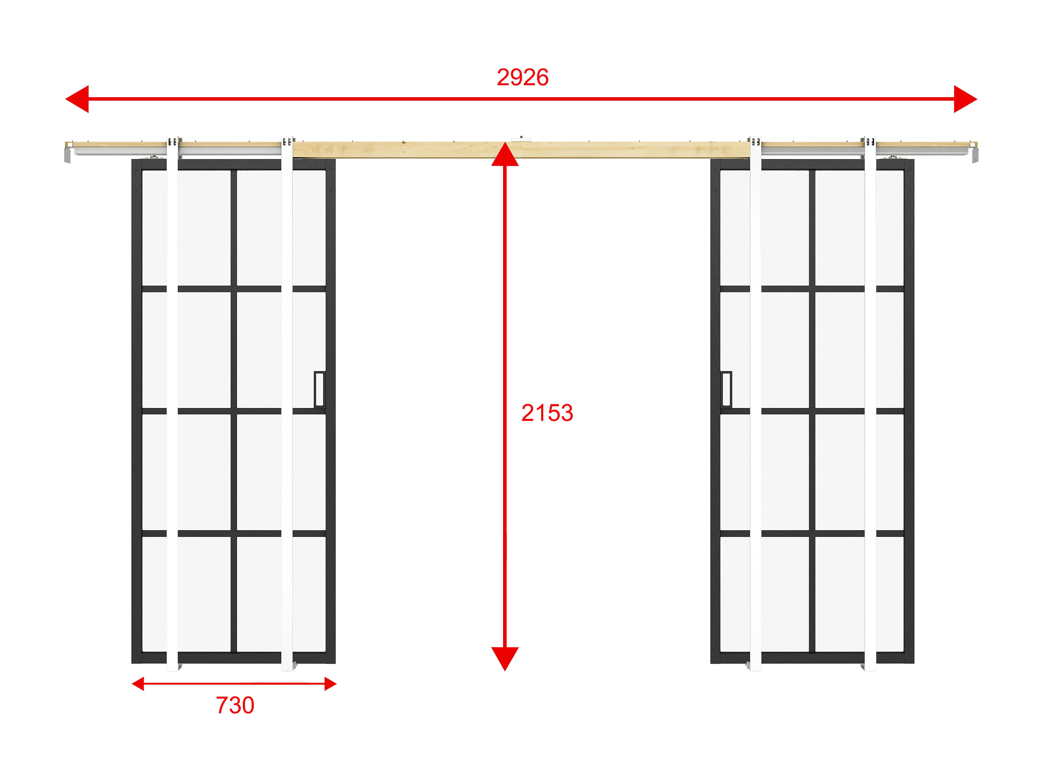 Porte coulissante double avec système à galandage en aluminium et verre trempé - 2 x H205 x L73 cm - WILDEN II
