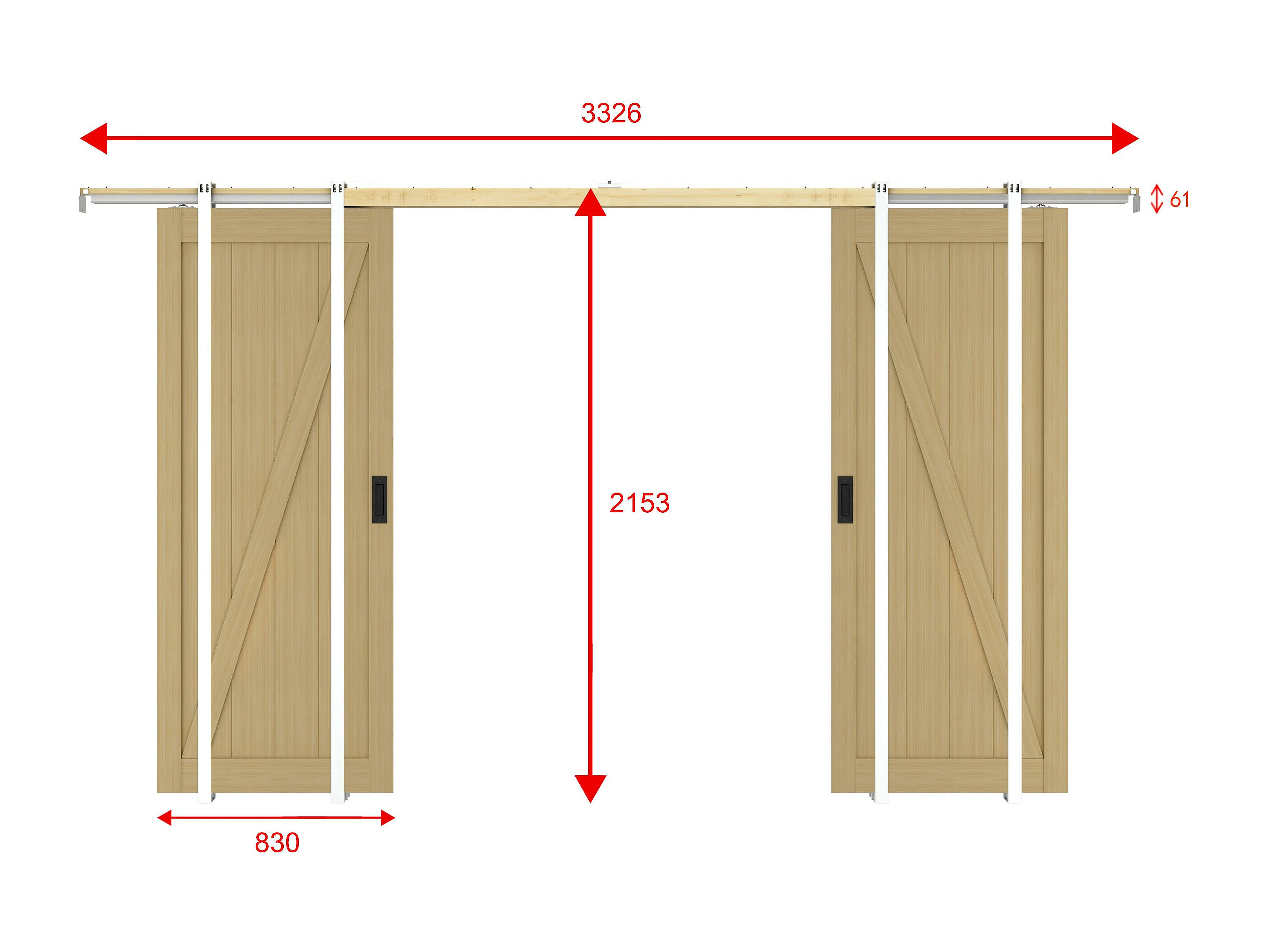 Porte coulissante double avec système à galandage en bois et MDF - Naturel clair - 2 x H205 x L83 cm - BALERMA