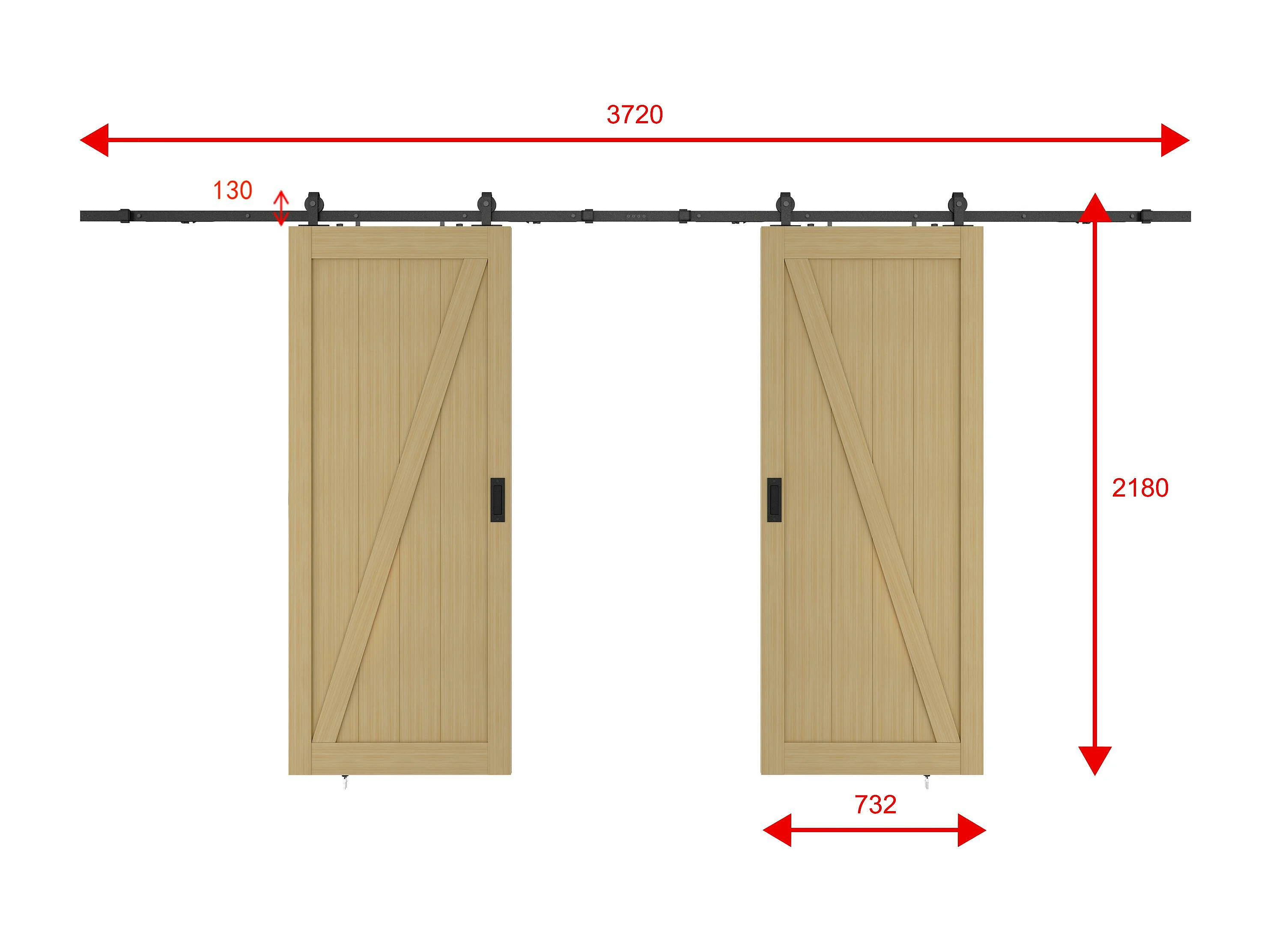 Porte coulissante double avec système en applique en bois et MDF - Naturel clair - 2 x H205 x L73 cm - BALERMA