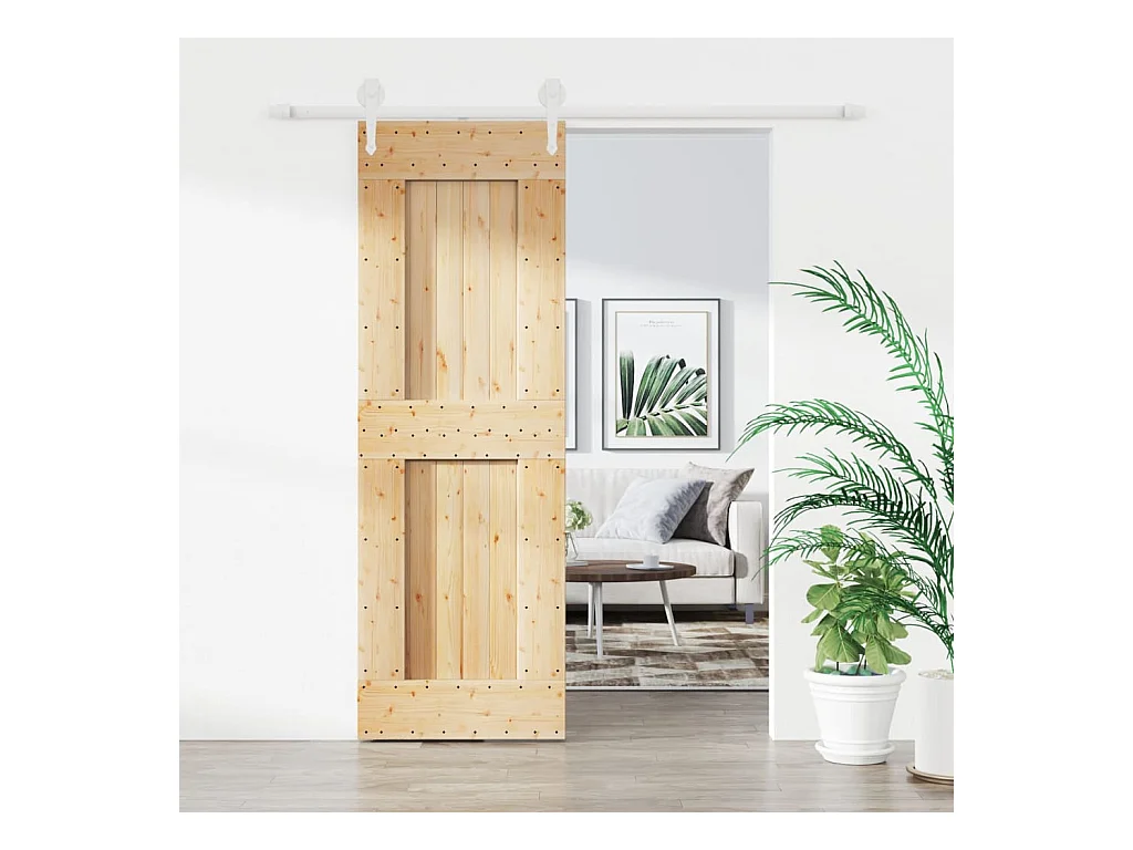 Porte coulissante et kit de quincaillerie 70x210 cm pin massif