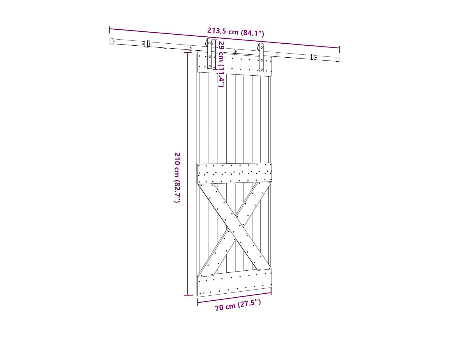 Porte coulissante et kit de quincaillerie 70x210 cm pin massif