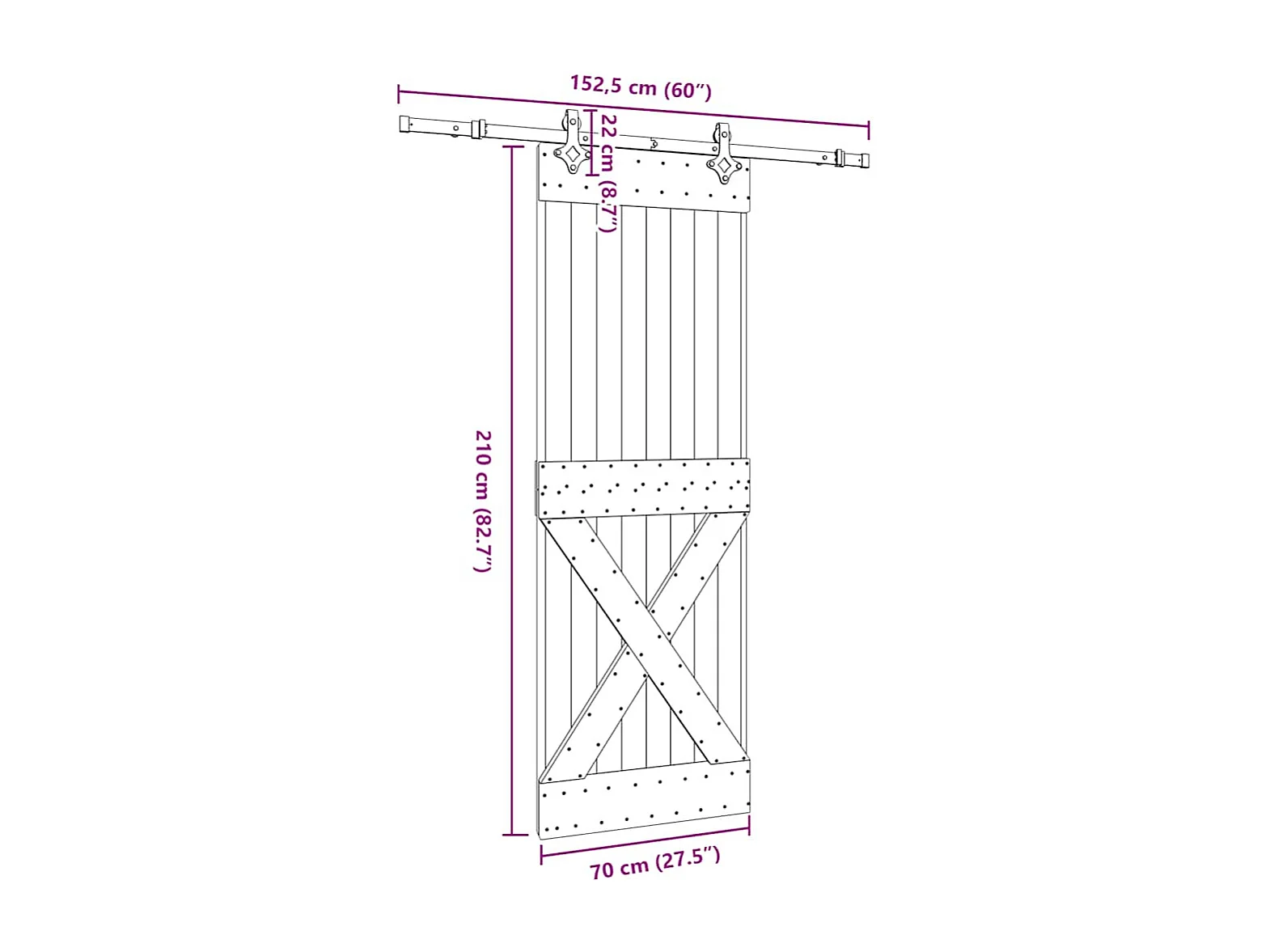 Porte coulissante et kit de quincaillerie 70x210 cm pin massif