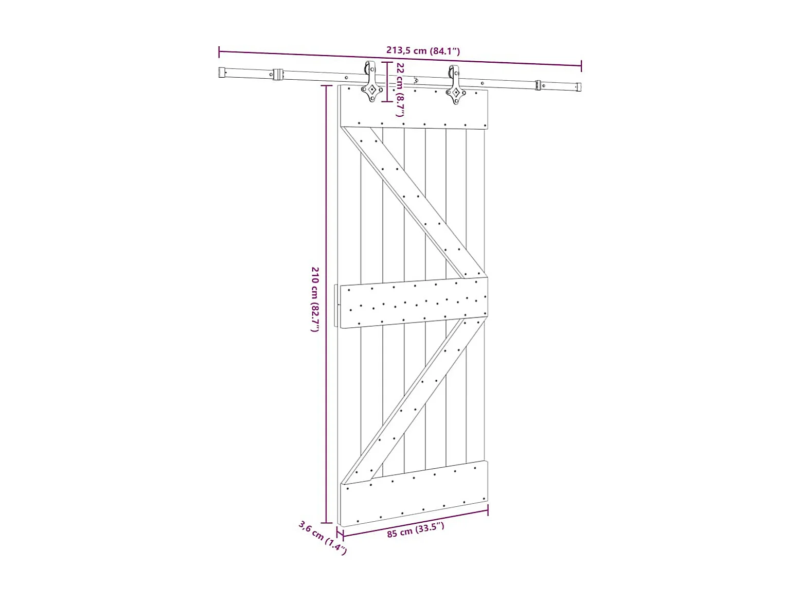 Porte coulissante et kit de quincaillerie 85x210 cm pin massif