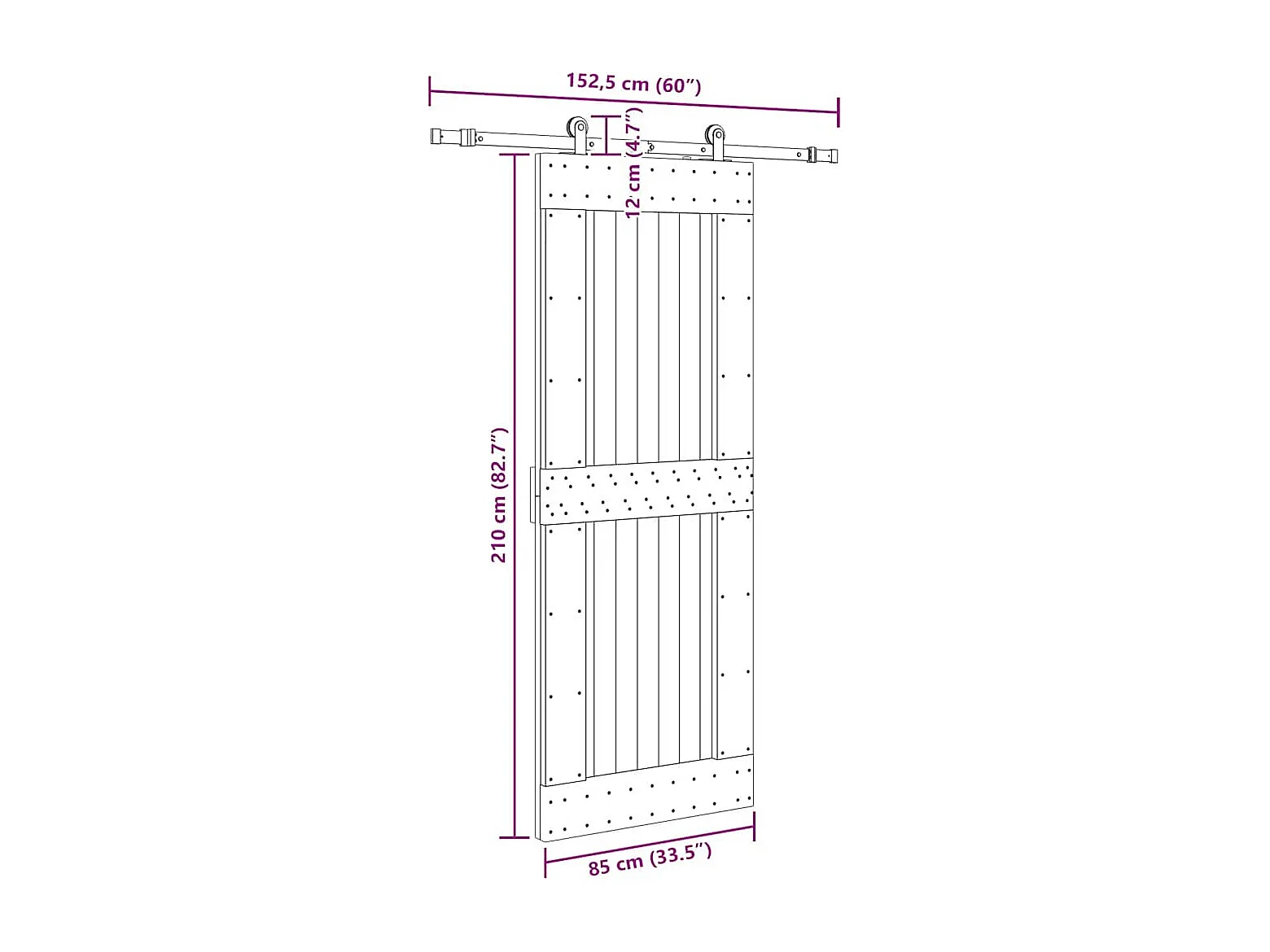 Porte coulissante et kit de quincaillerie 85x210 cm pin massif