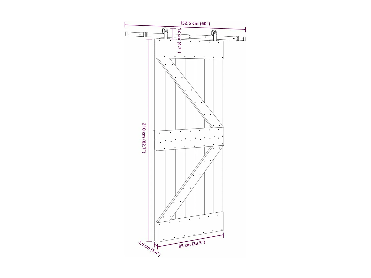 Porte coulissante et kit de quincaillerie 85x210 cm pin massif