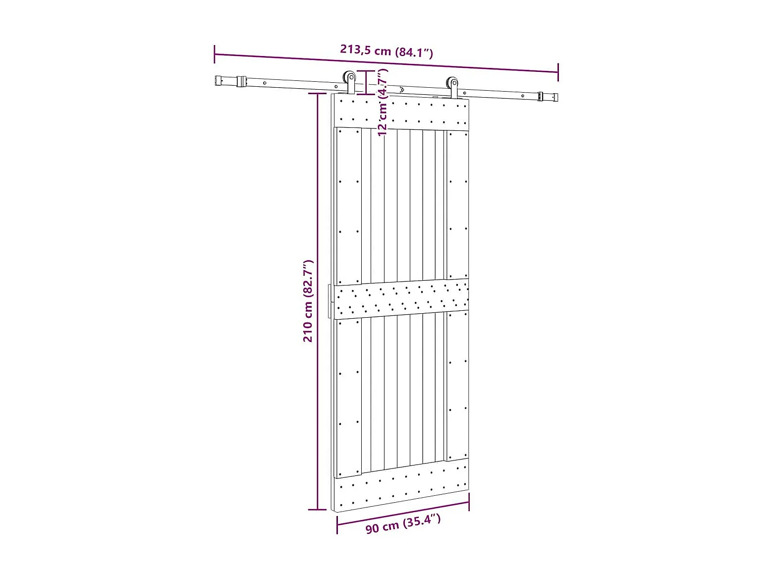 Porte coulissante et kit de quincaillerie 90x210 cm pin massif
