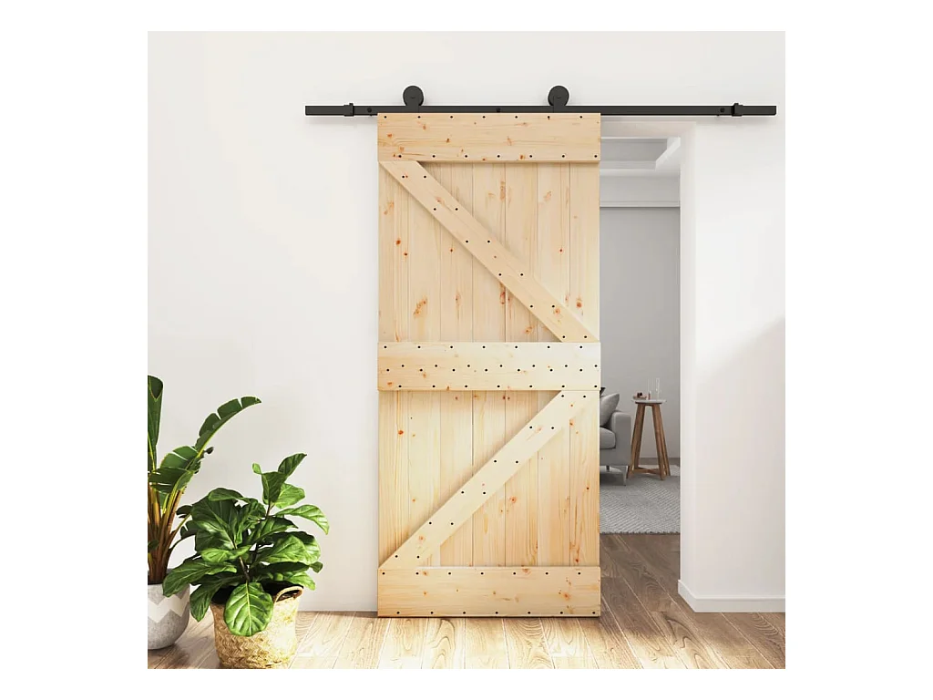 Porte coulissante et kit de quincaillerie 95x210 cm pin massif