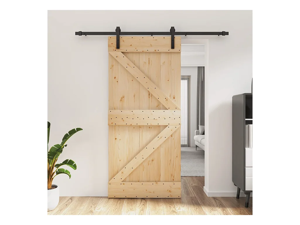 Porte coulissante et kit de quincaillerie 95x210 cm pin massif