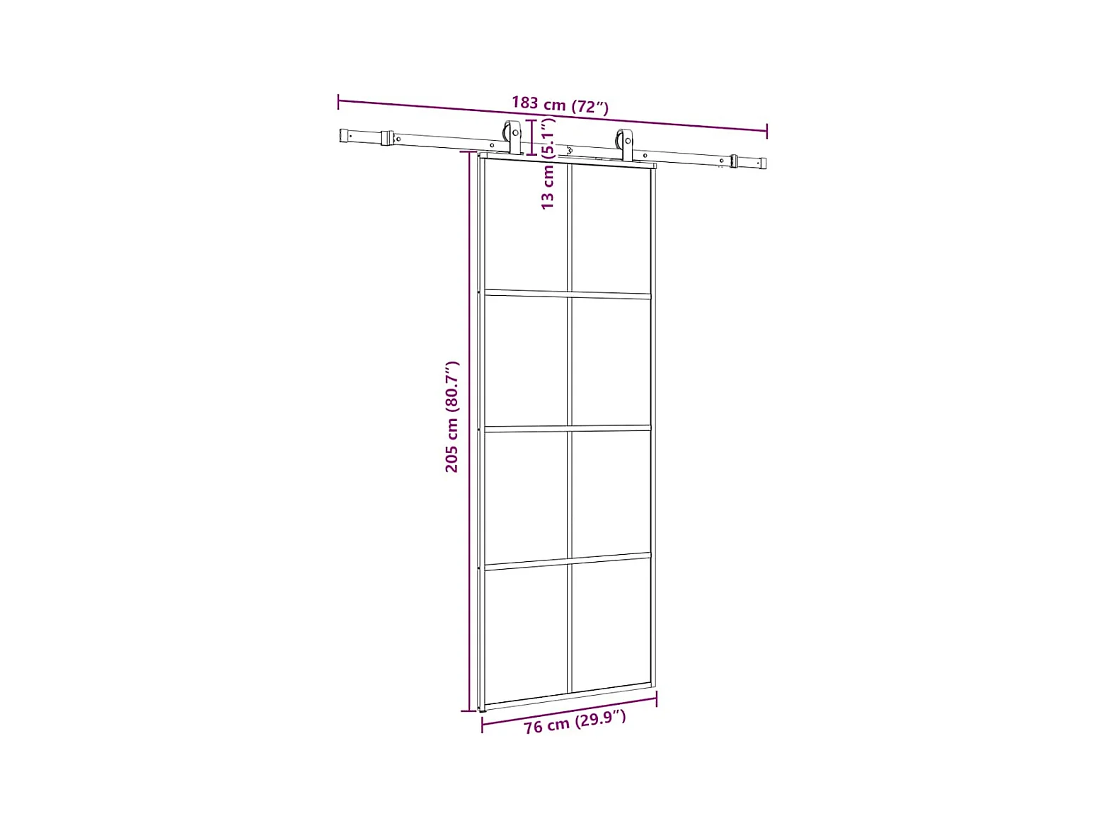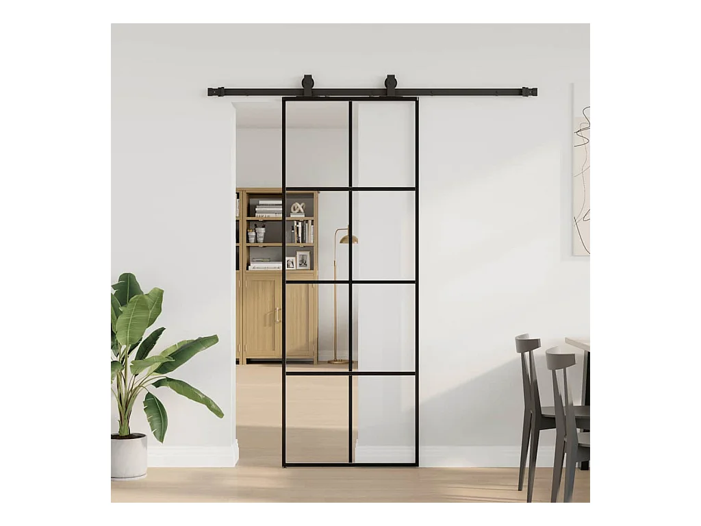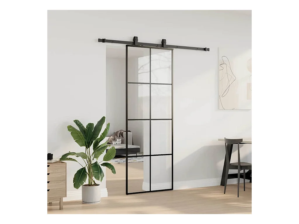 Porte coulissante kit de quincaillerie noir 76x205 cm verre ESG