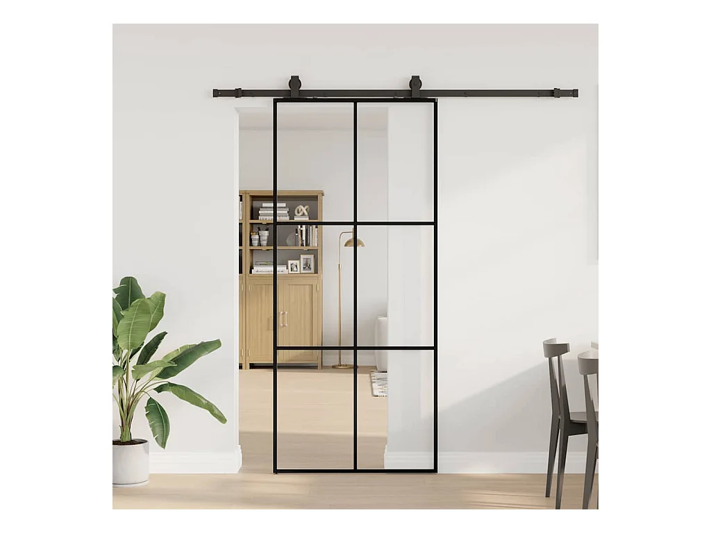 Porte coulissante kit de quincaillerie noir 90x205 cm verre ESG