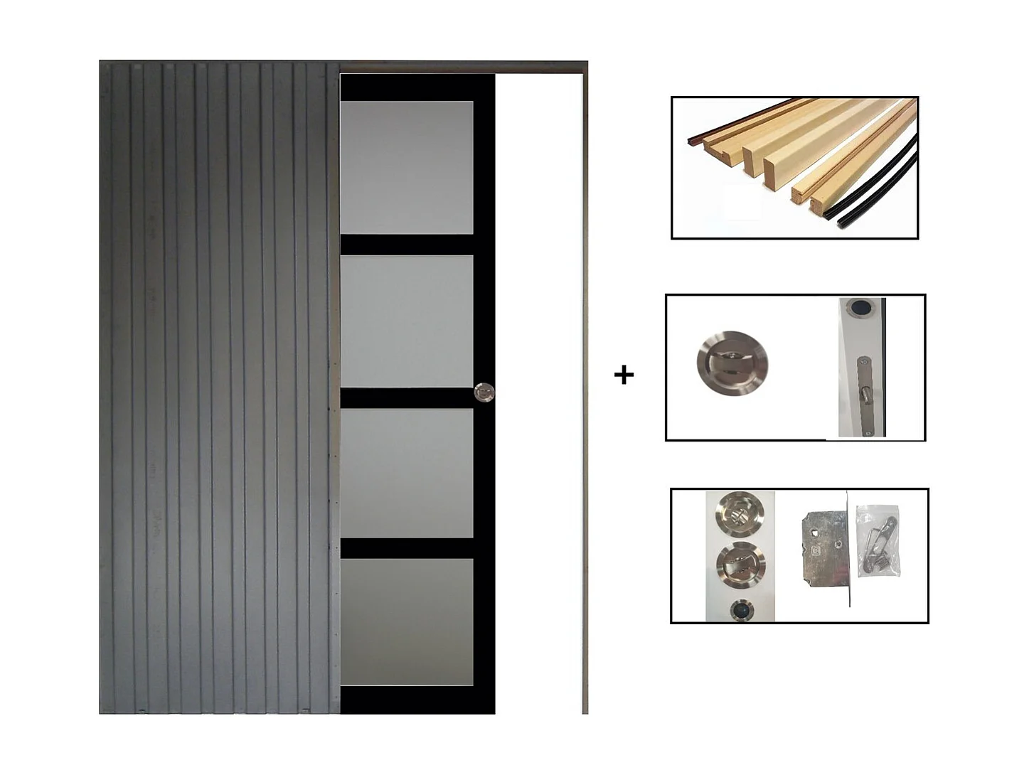 Porte Coulissante Telia Noir Vitree H204 X L83 + Systeme Galandage Et Kit De Finition Inclus Gd Menuiseries