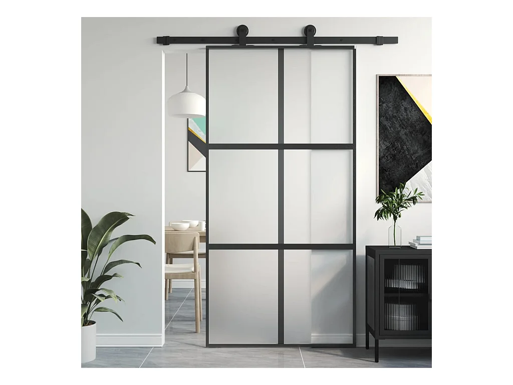 Porte coulissante noir 102,5x205 cm verre trempé aluminium FR925151