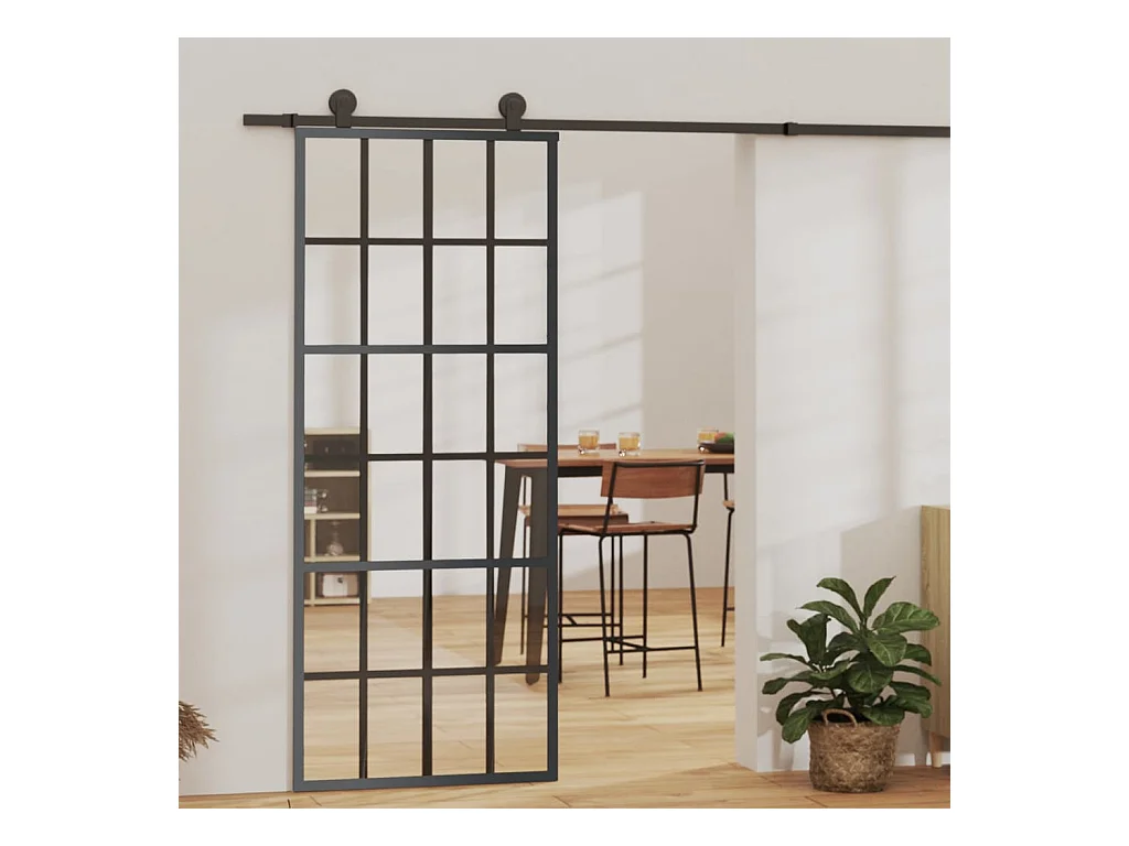 Porte coulissante Verre ESG et aluminium 76x205 cm Noir