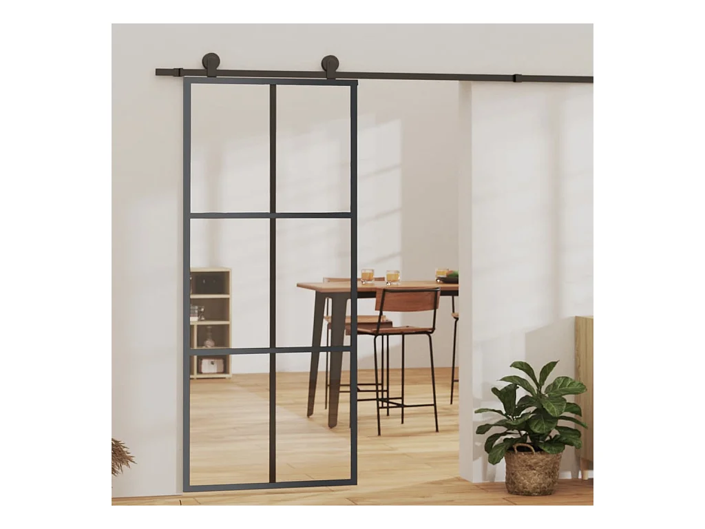 Porte coulissante Verre ESG et aluminium 90x205 cm Noir