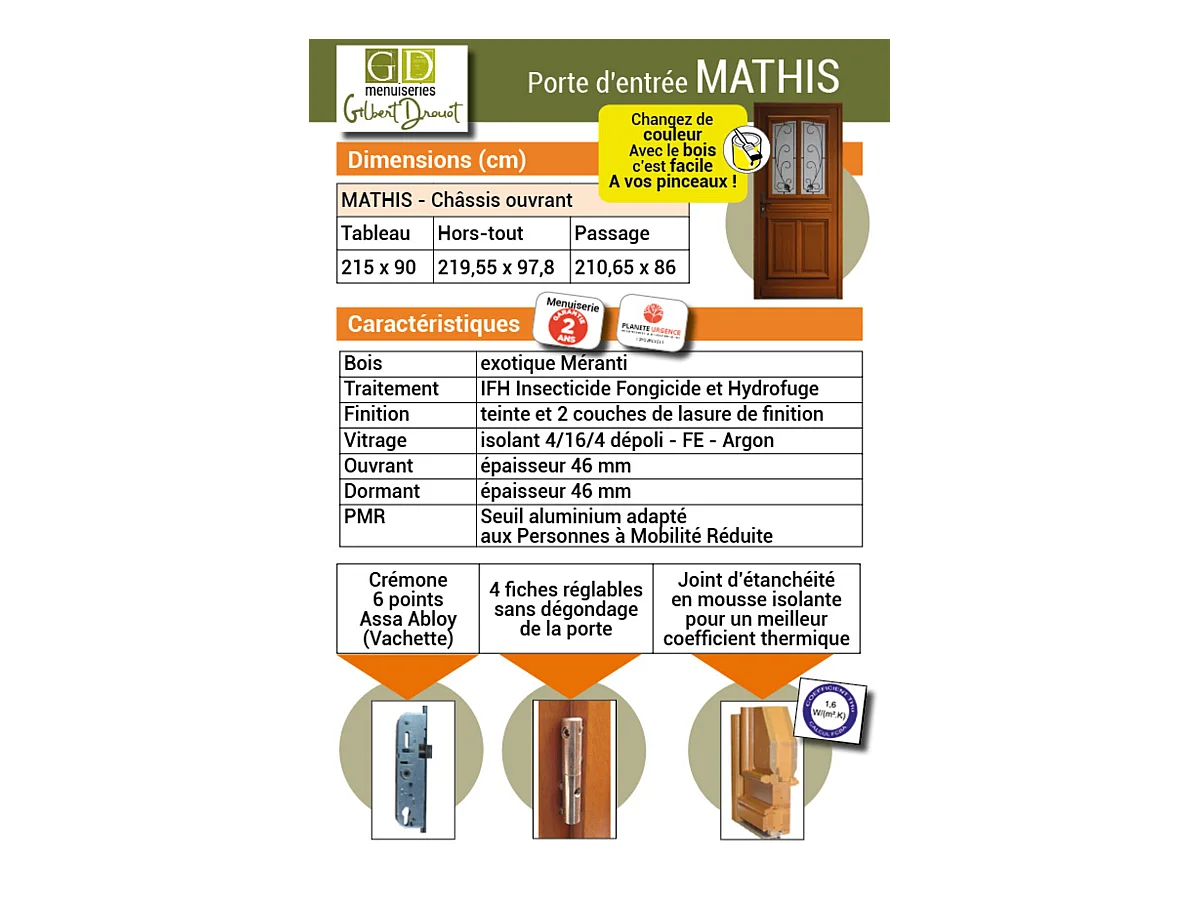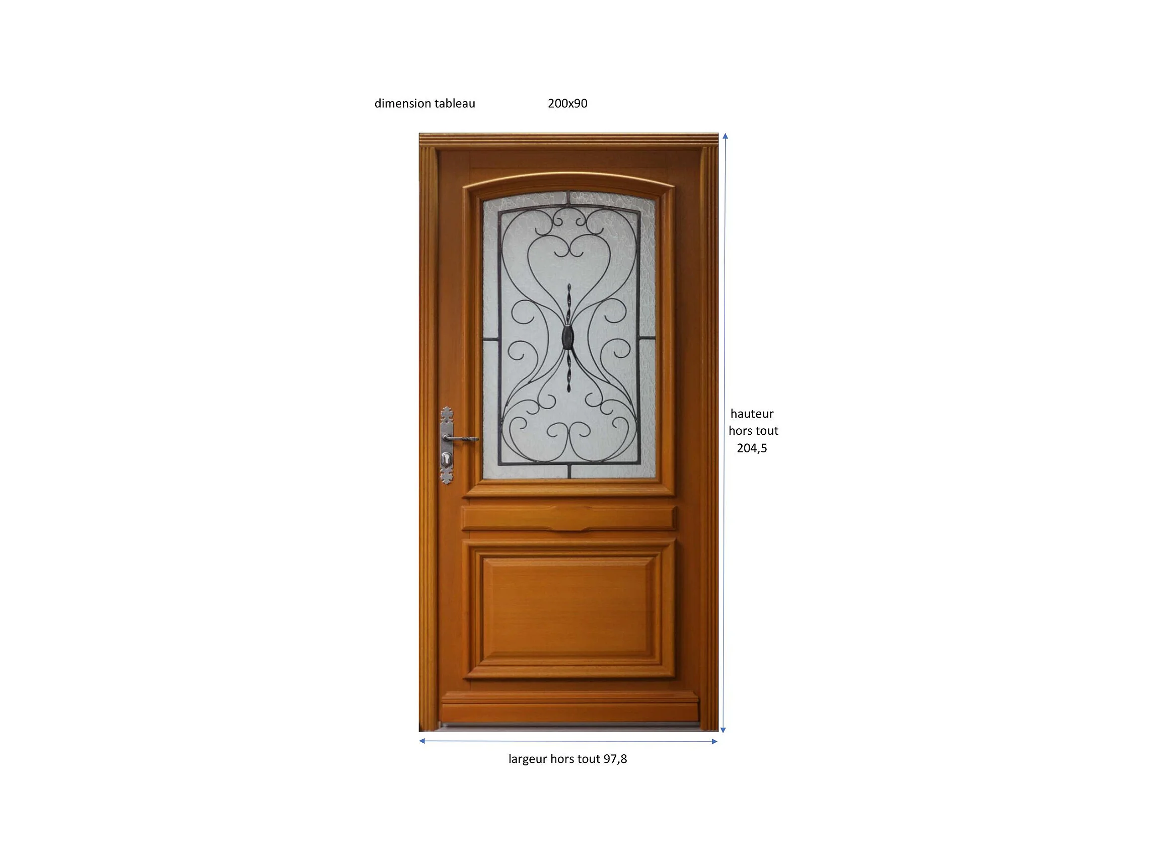 Porte d'entree Bois vitree, Mathis, H,200xl,80 p, droit Cotes Tableau