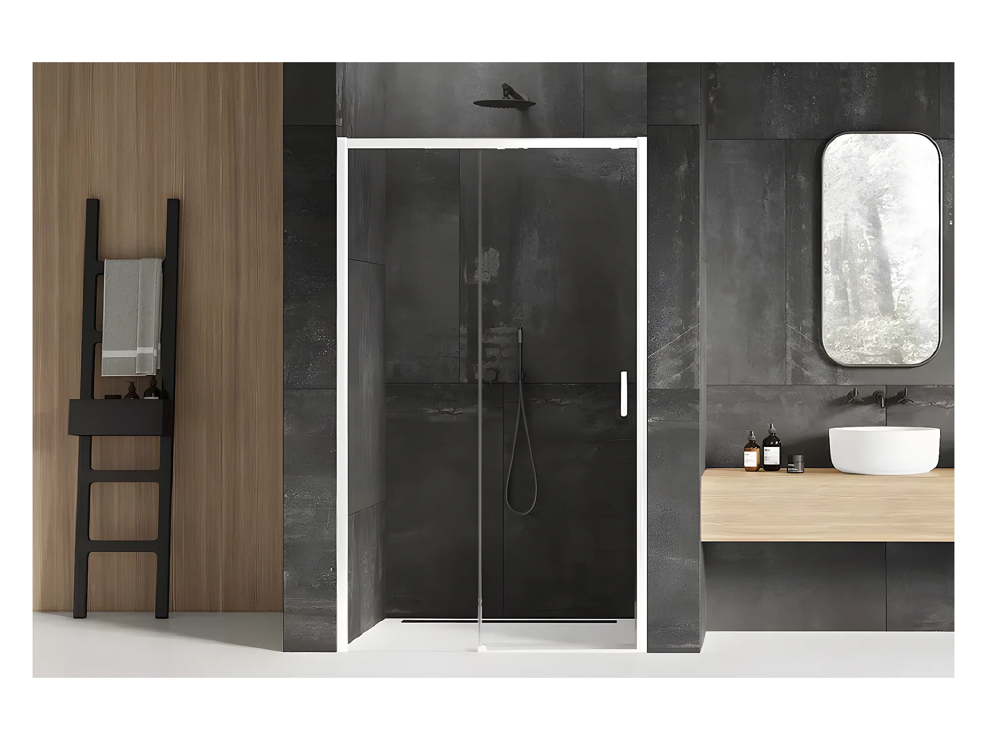 Porte de douche 100 cm coulissante blanche droite 2 volets MARTINIQUE WHITE