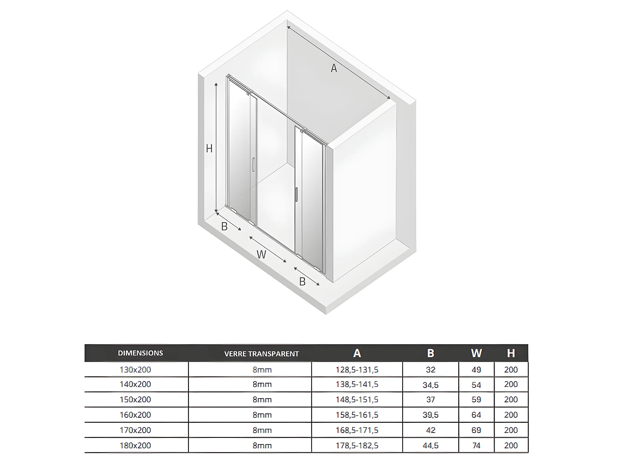 Porte de douche coulissante chromé 4 volets MALDIVES CHROME,Largeur: 180 cm, verre 8 mm